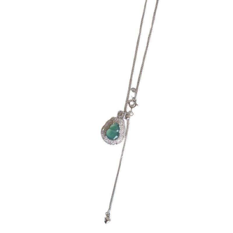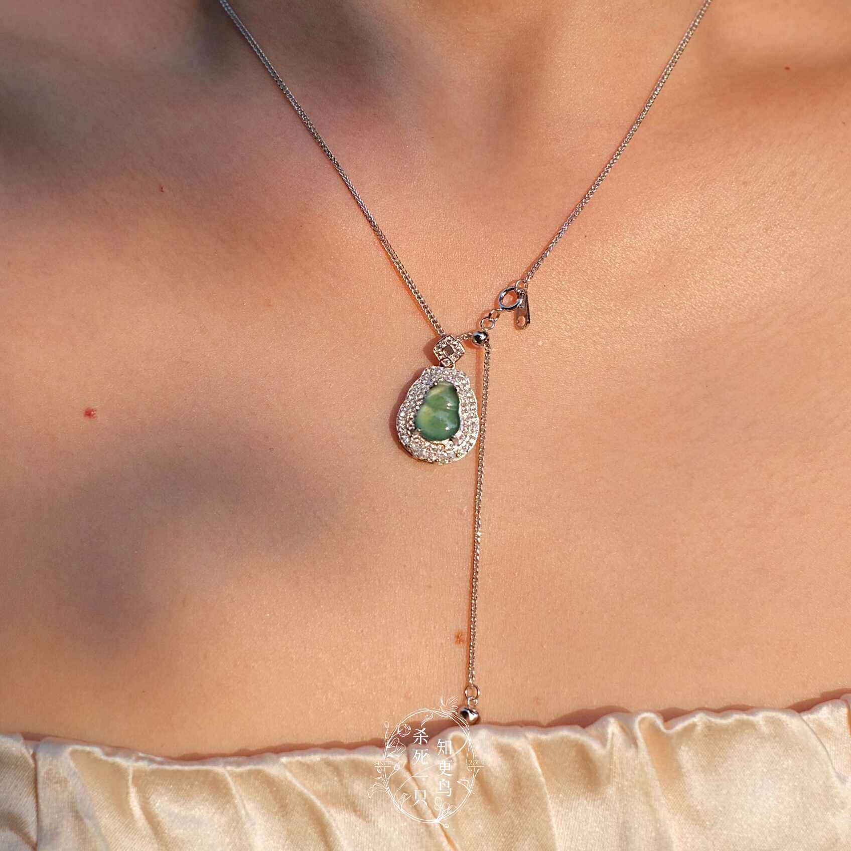 《宝葫芦》通体纯银轻奢小众新中式天然蓝水翡翠吊坠项链锁骨链女