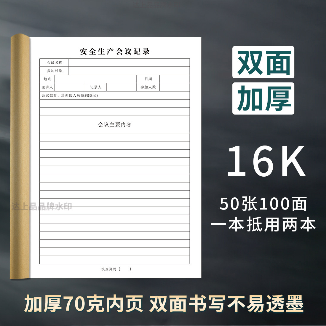 安全会议记录本生产台账检查笔记本办公施工日志记录本班组班前活动设备维修保养记录加厚定制牛皮纸消防本