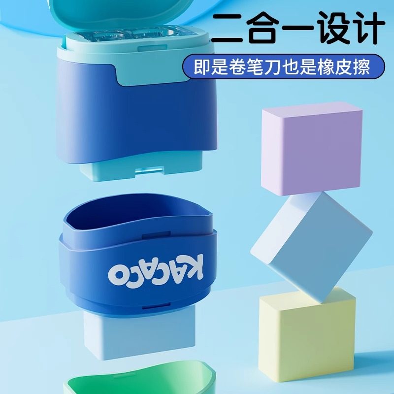晨光卡卡扣橡皮卷笔刀小学生专用削笔器旋刨铅笔刀幼儿园手动大口径粗杆刨笔机儿童多功能二合一双孔转笔刀