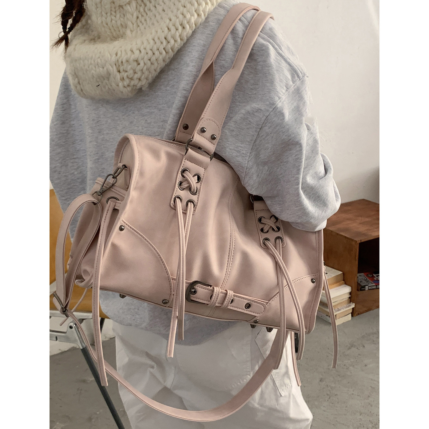 伊布古奇大容量单肩手提机车水洗皮包2025秋冬季时尚百搭单肩包包