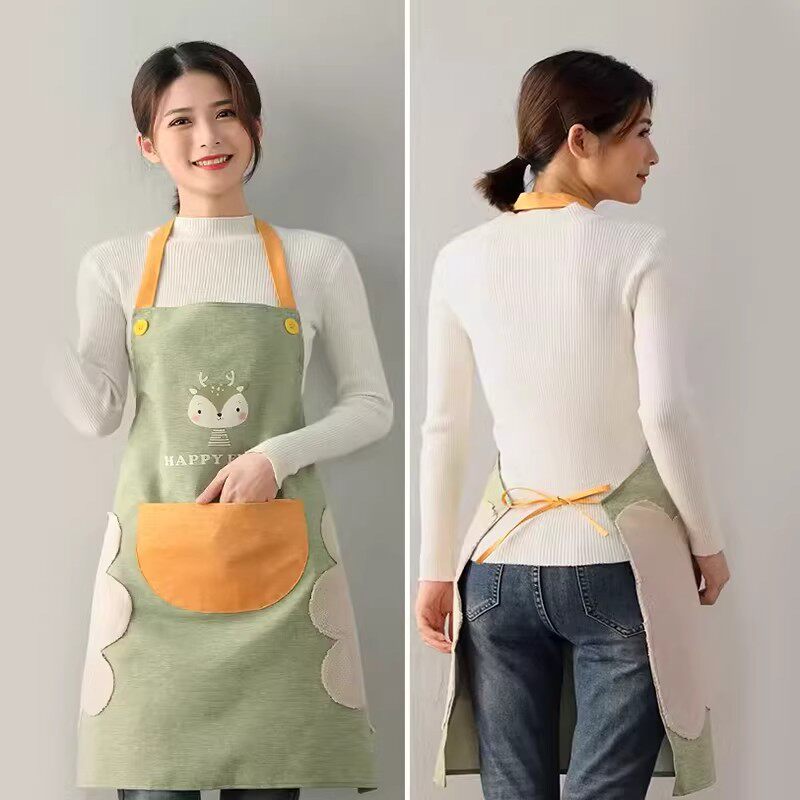 围裙家用厨房防水防油污渍夏季薄款可爱挂脖可擦手带口袋做饭围腰