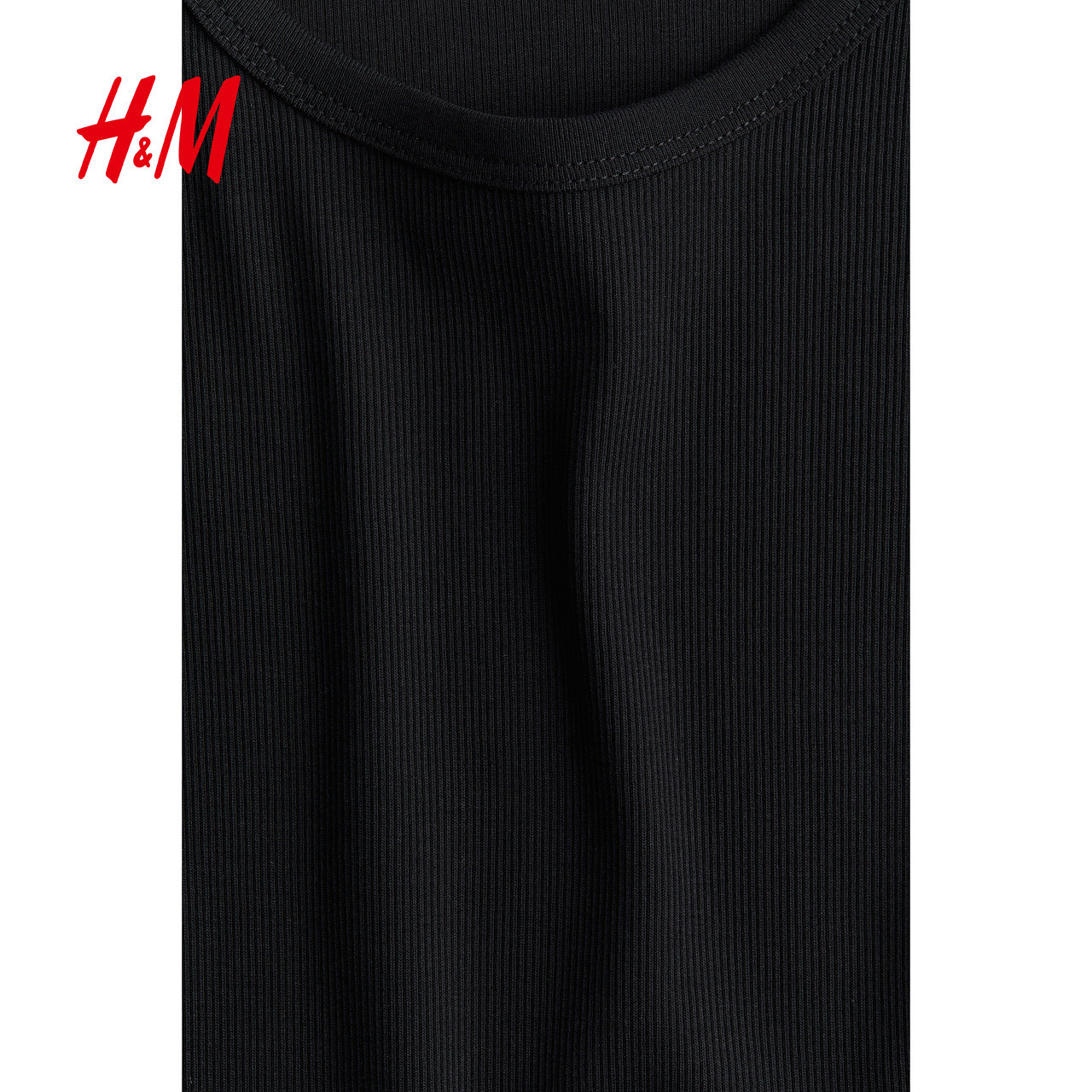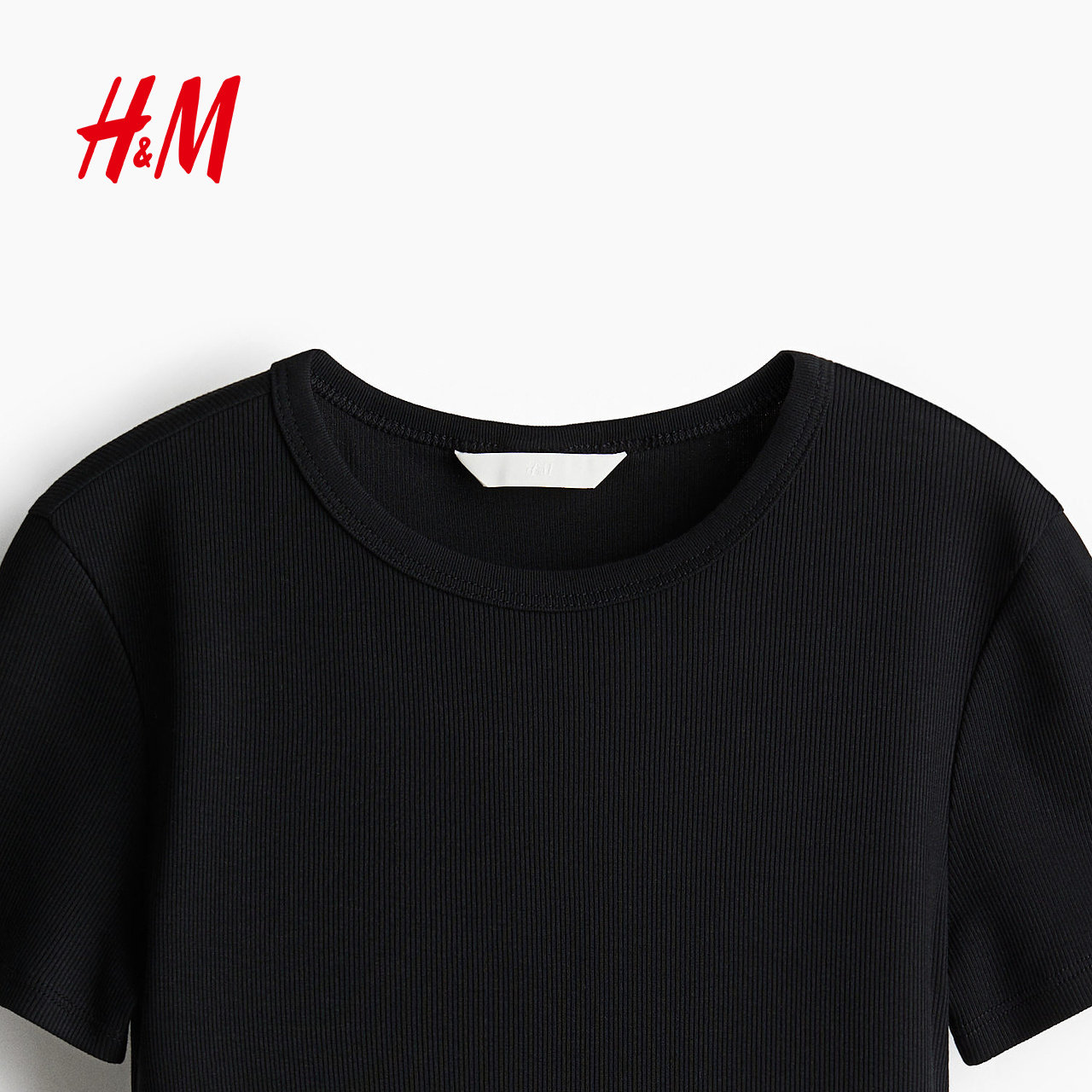 HM女装T恤春季时尚修身短袖窄边领口直筒下摆上衣1260556