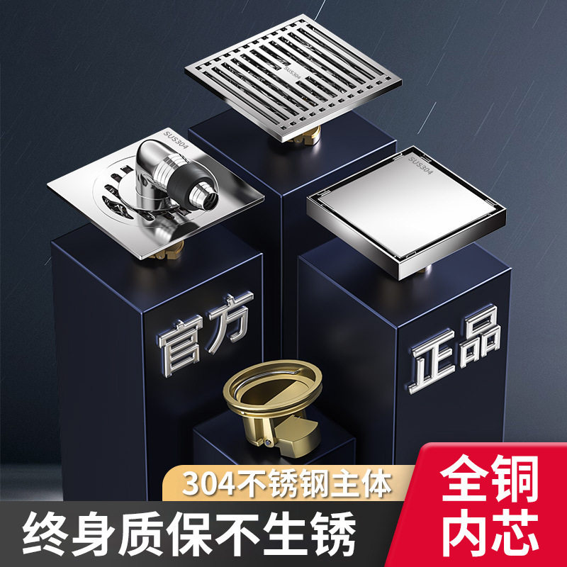 304不锈钢全铜芯地漏卫生间淋浴房下水道防虫防臭大排量防臭器