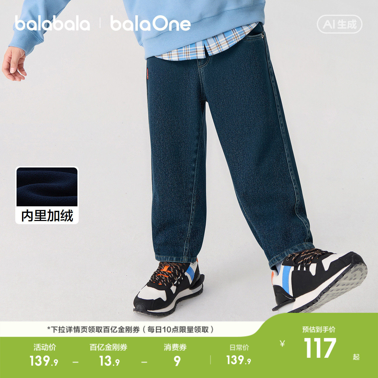 巴拉巴拉童装儿童裤子男童2026新款春装装牛仔裤保暖百搭时尚下装