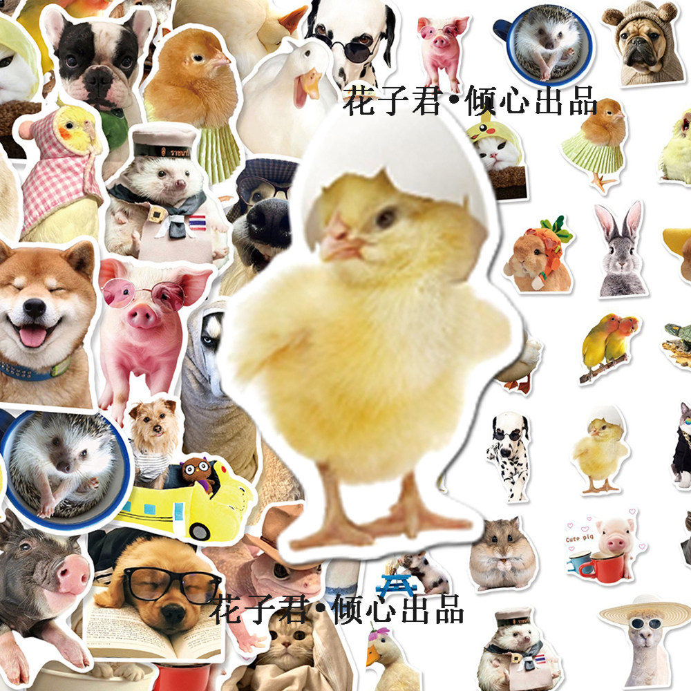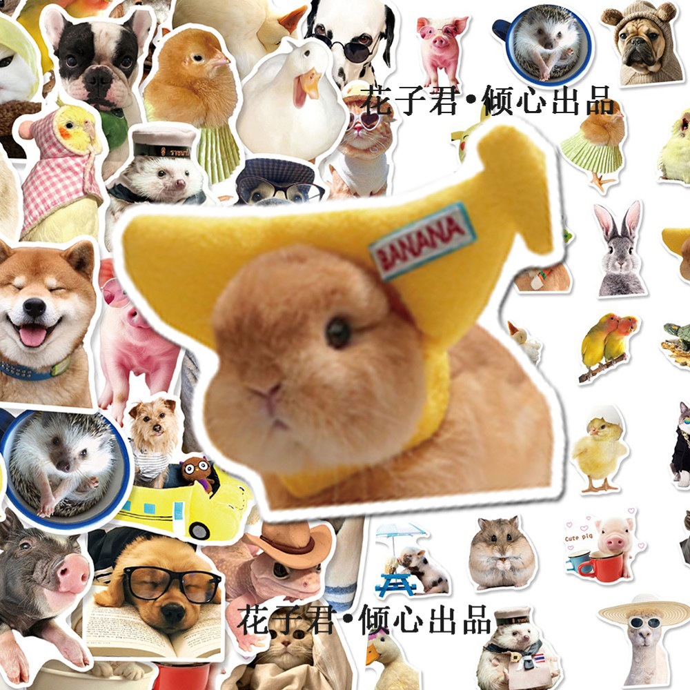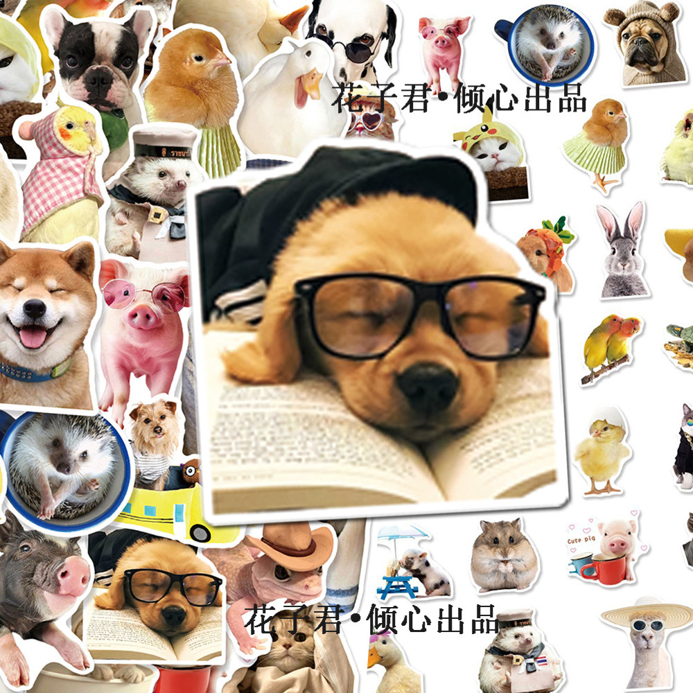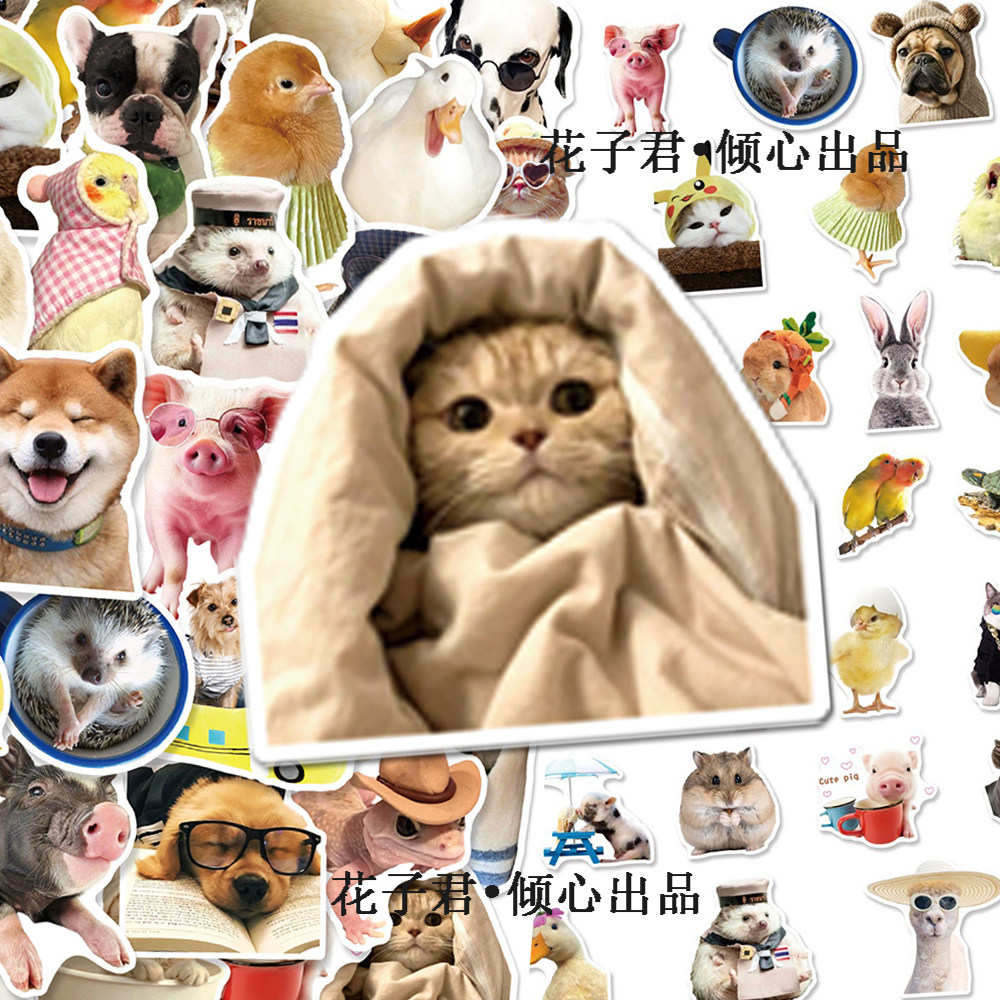 100张写实动物贴纸ins风呆萌可爱猫咪狗狗小仓鼠diy装饰贴画