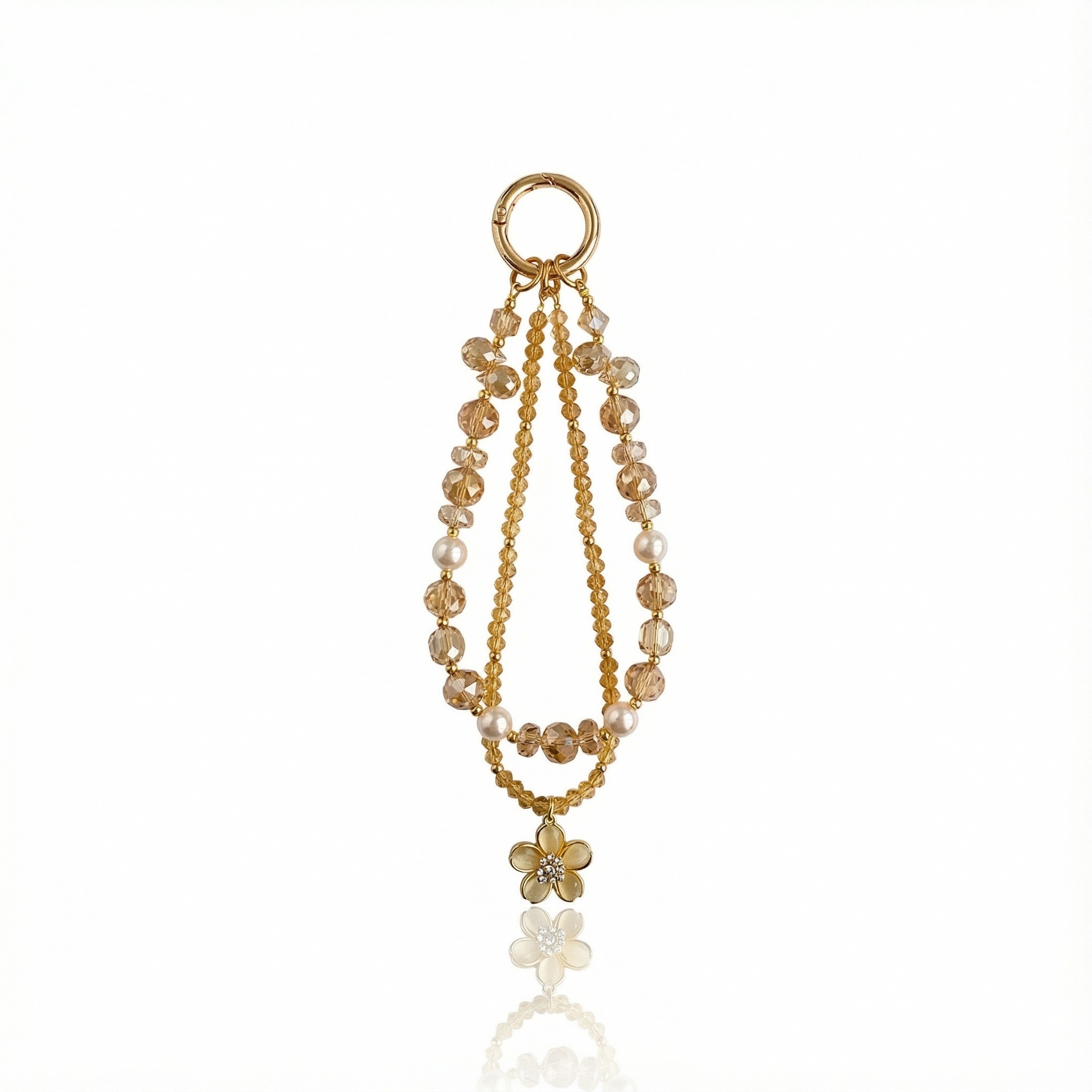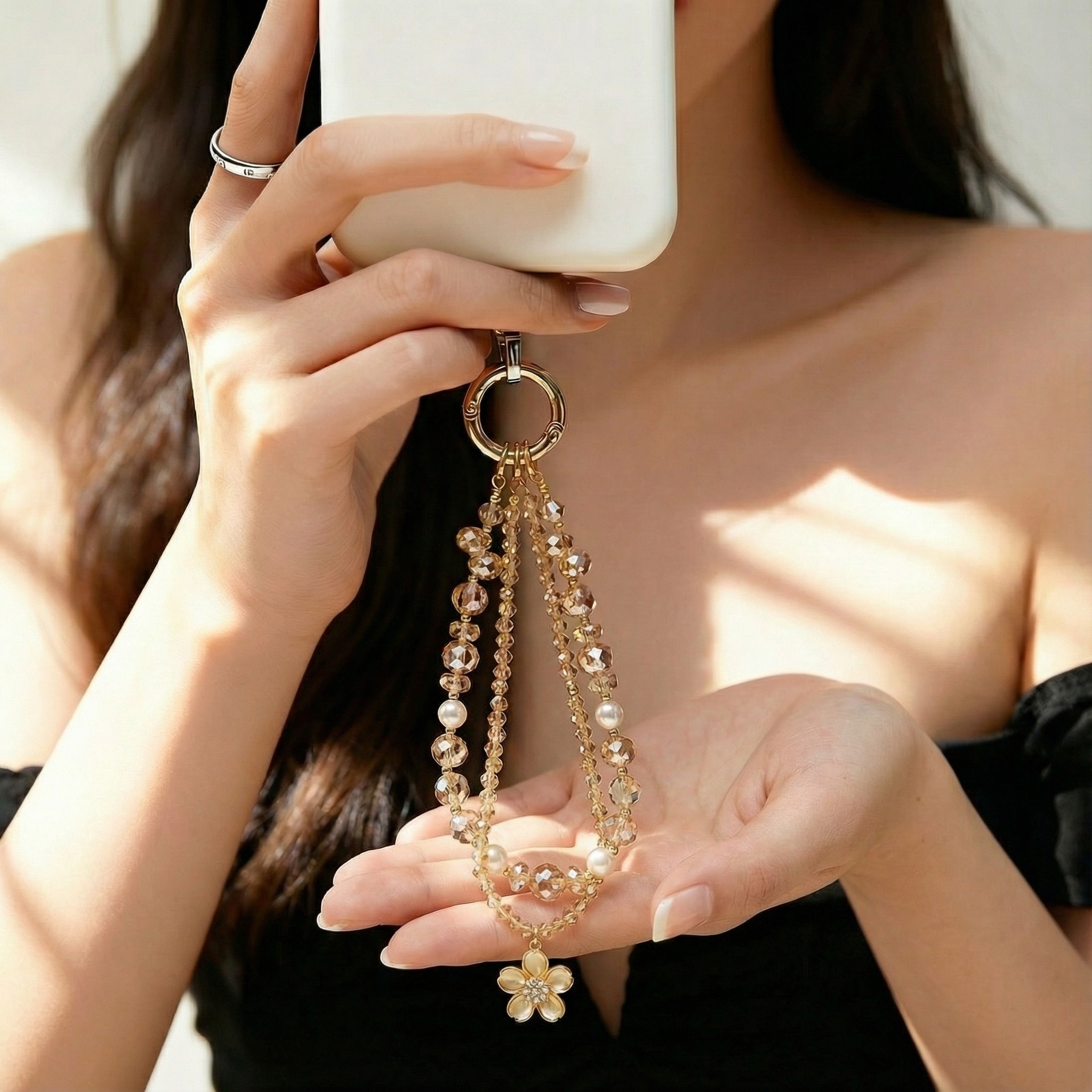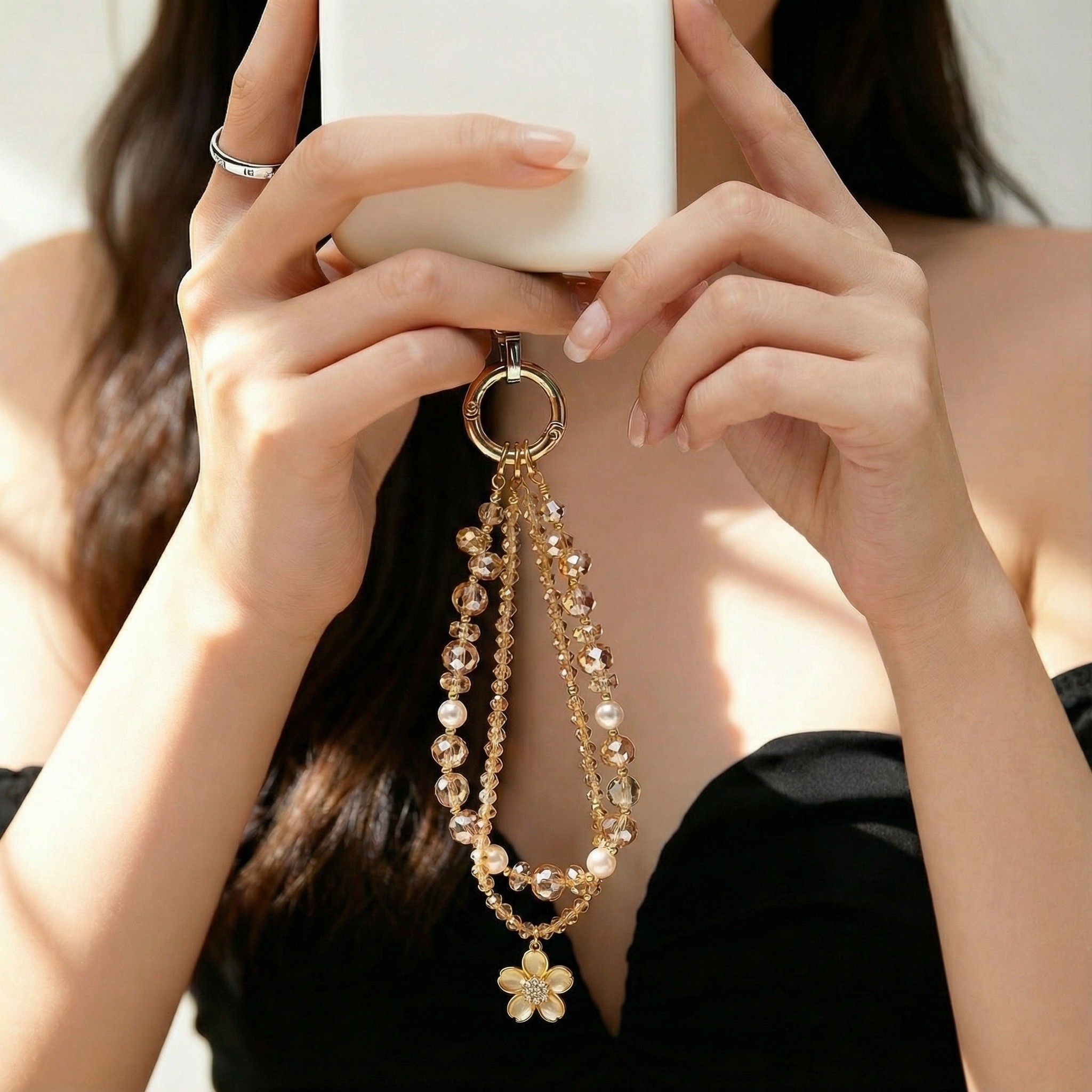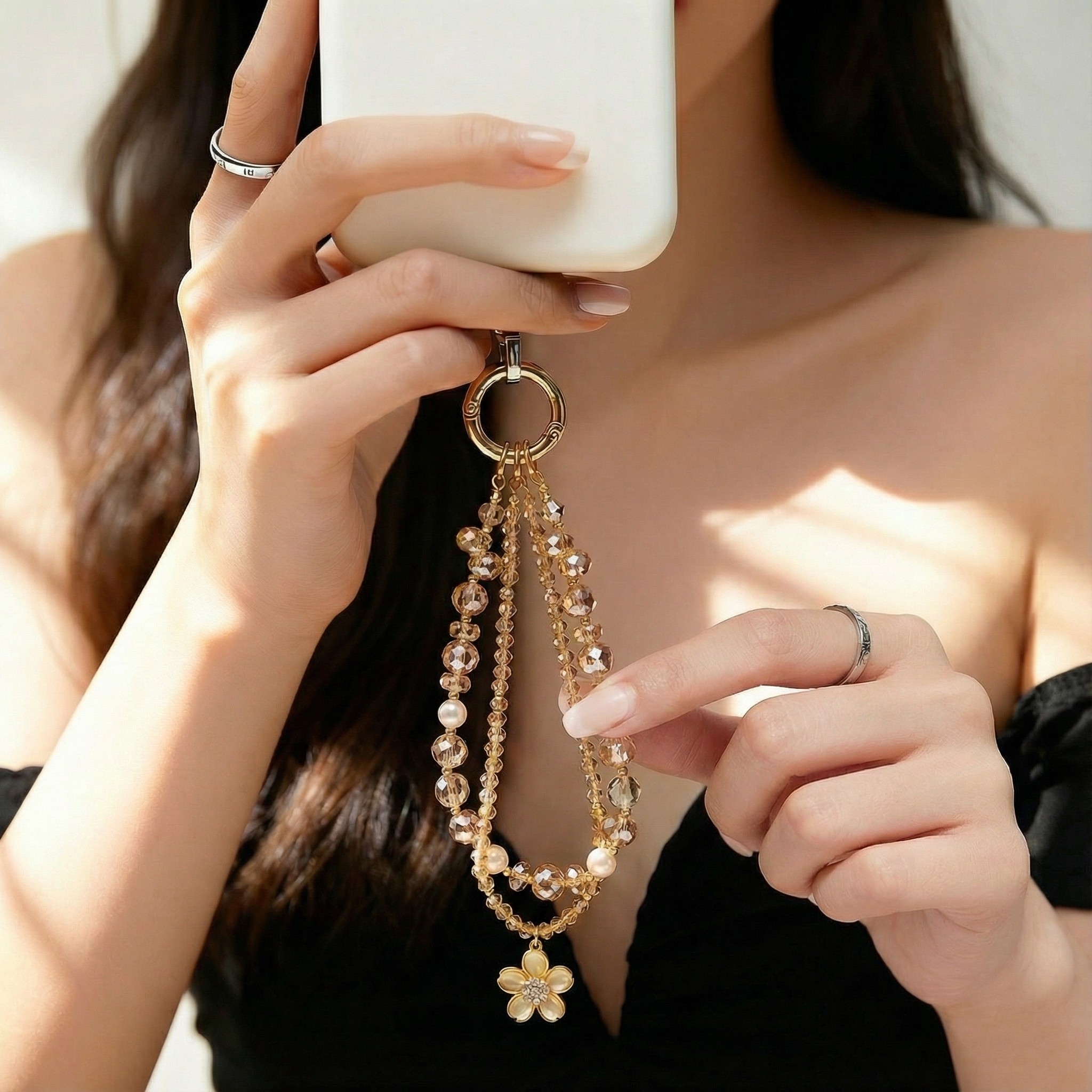 黄色水晶珍珠手机链轻奢小众精致高级感挂手腕挂绳挂饰配件挂件