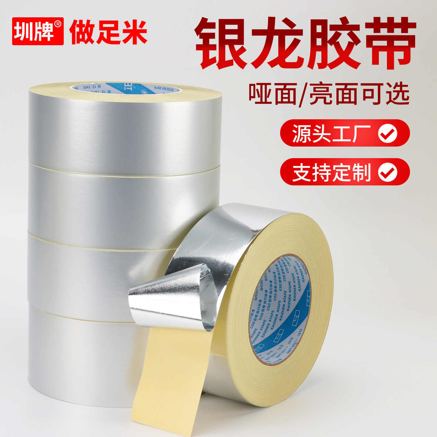 圳牌350 银龙胶带0.07mm亮哑面印刷版封网胶纸丝印网版封边装饰铝框防漏银箔贴纸导光板银色灯条窗户遮光胶带