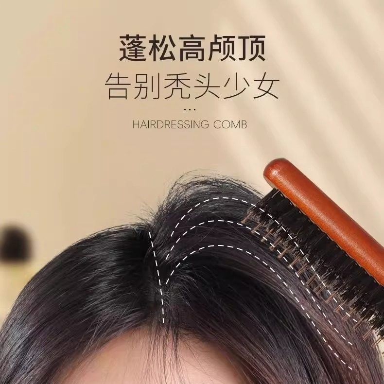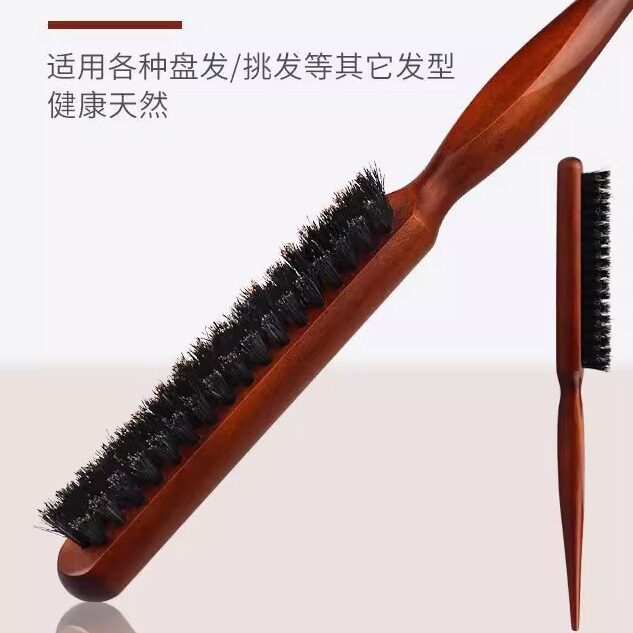 猪鬃毛窄齿梳美发三排打毛梳子蓬松造型长柄化妆尖尾盘发卷发木梳