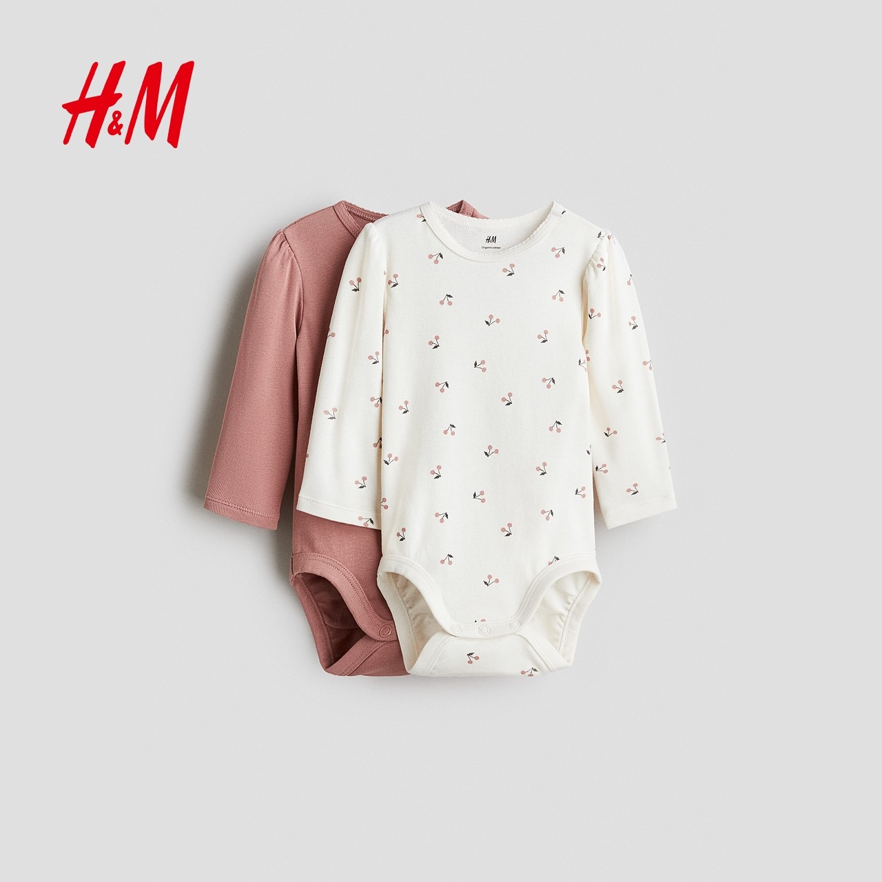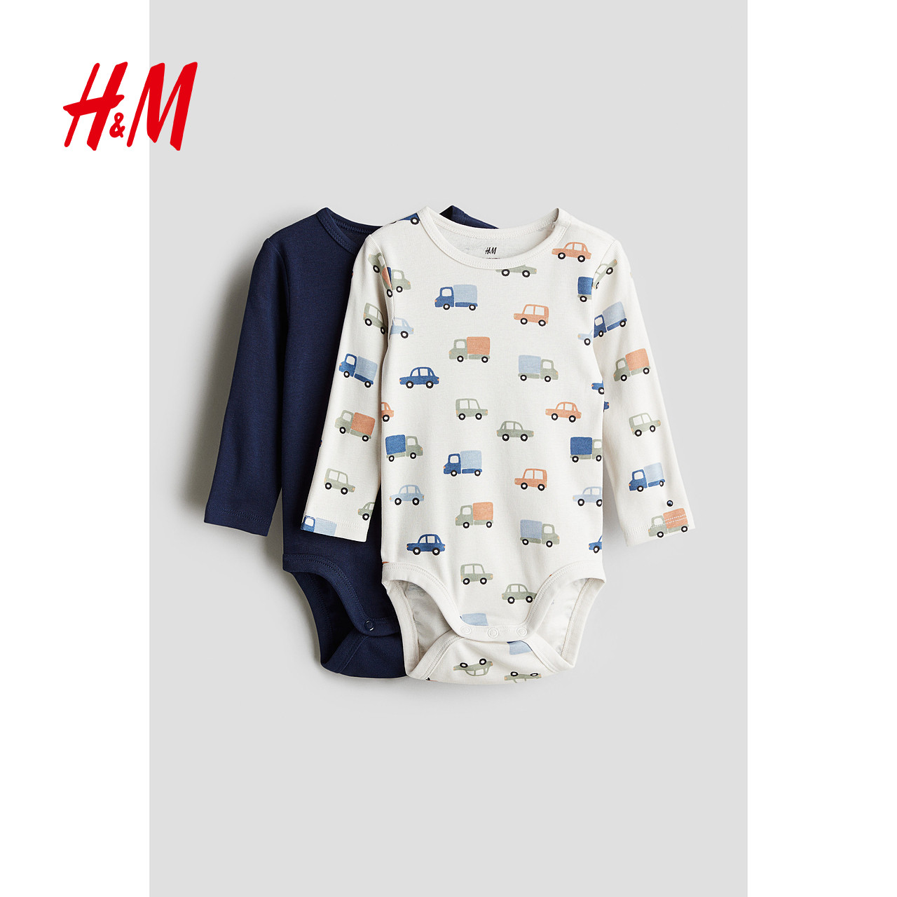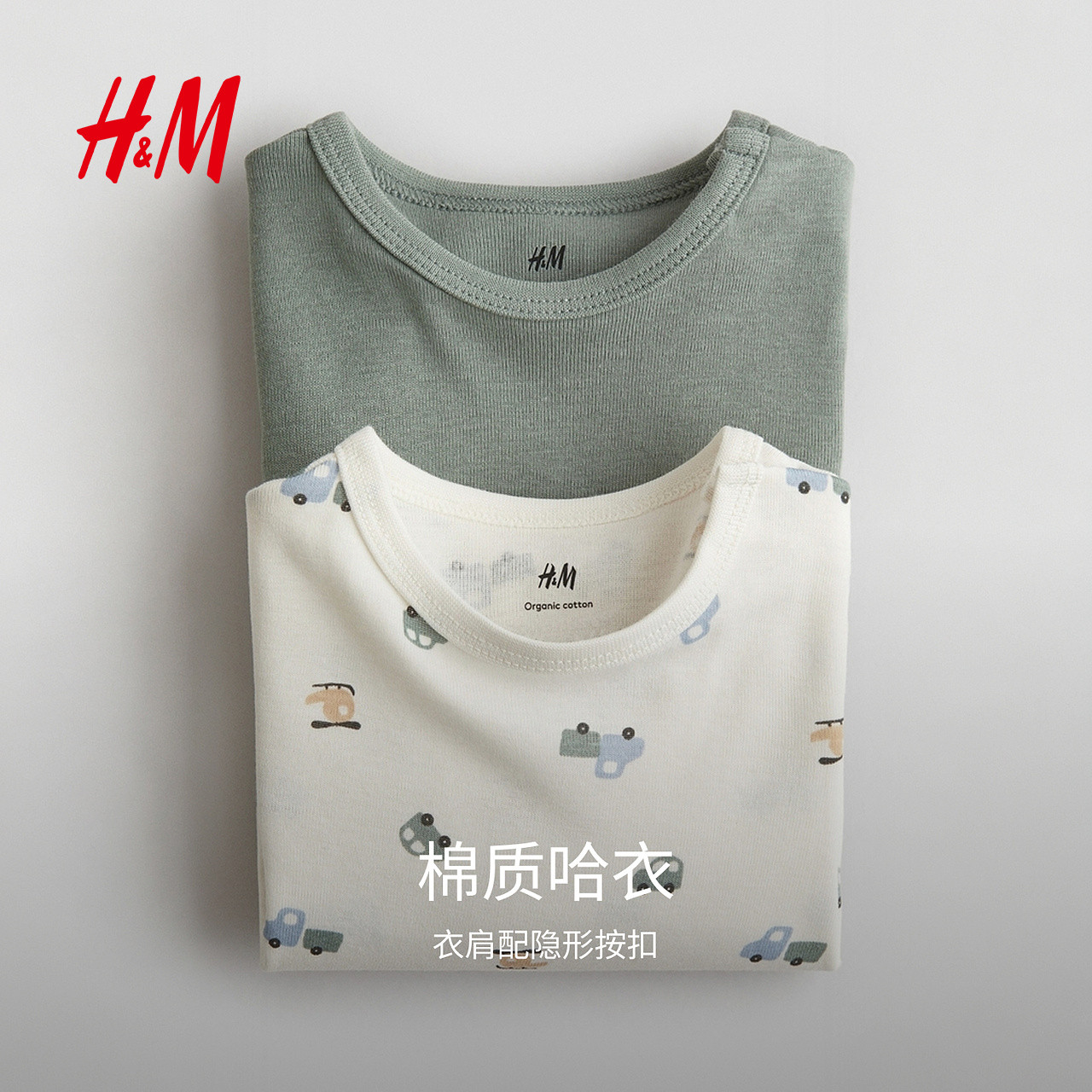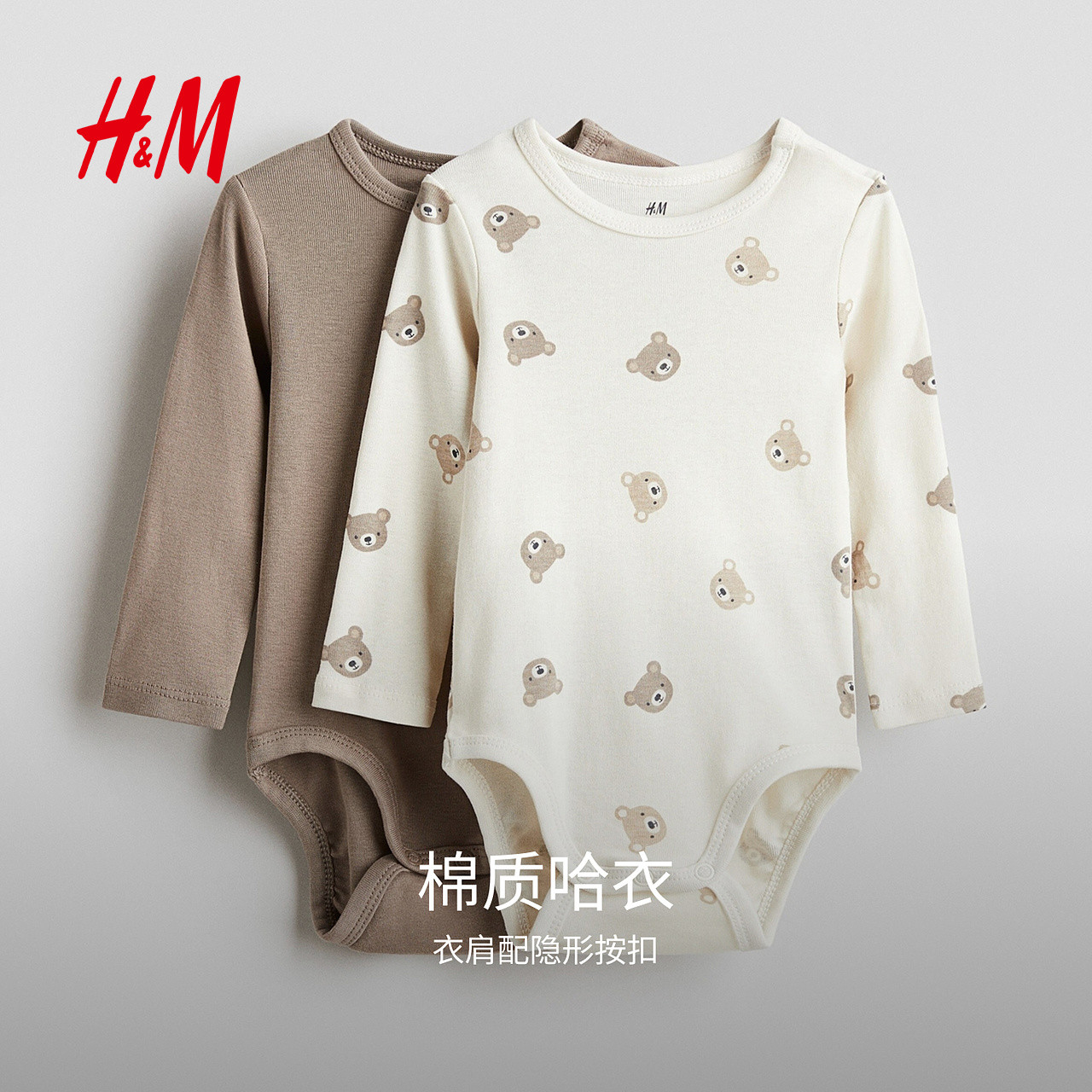 HM童装男婴女婴连体衣2件装冬季内着棉质汗布印花长袖哈衣1171574