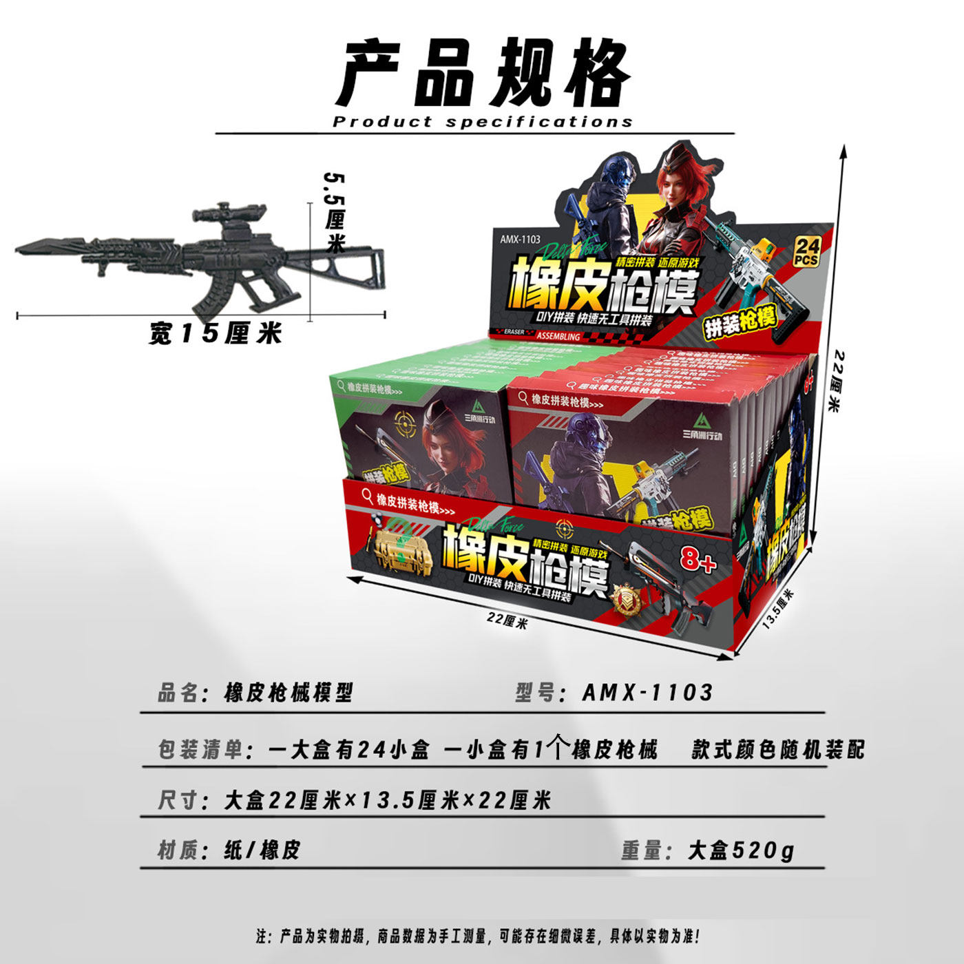 三角洲橡皮行动玩具枪造型橡皮擦游戏儿童小学生创意拼装橡皮枪模