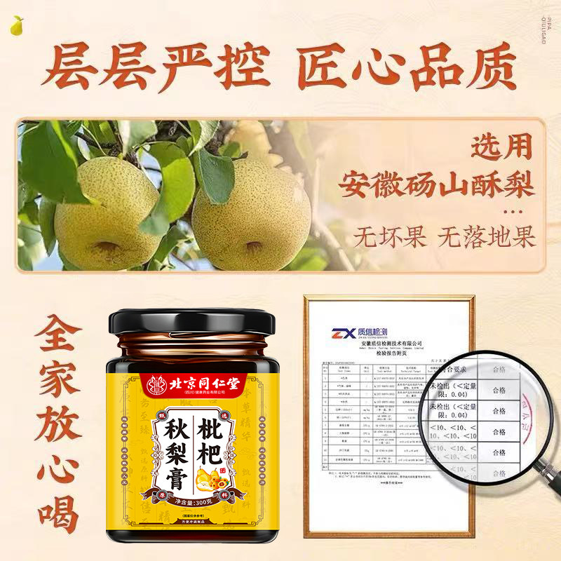北京同仁堂枇杷秋梨膏无添加儿童老人润肺止咳化痰300g喉咙甘草膏