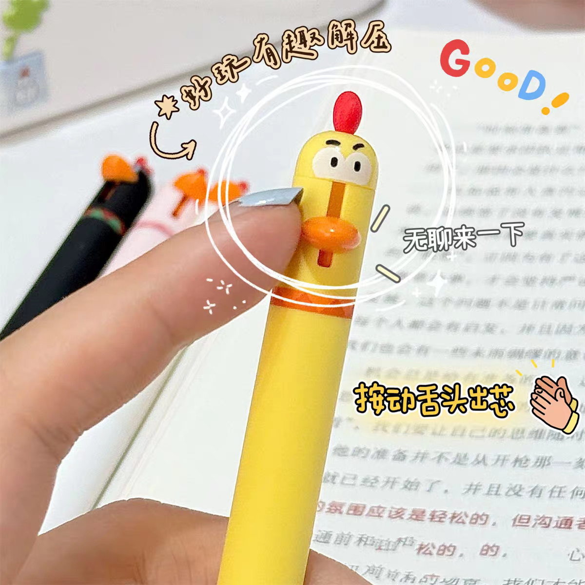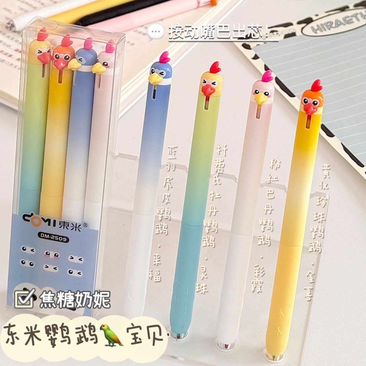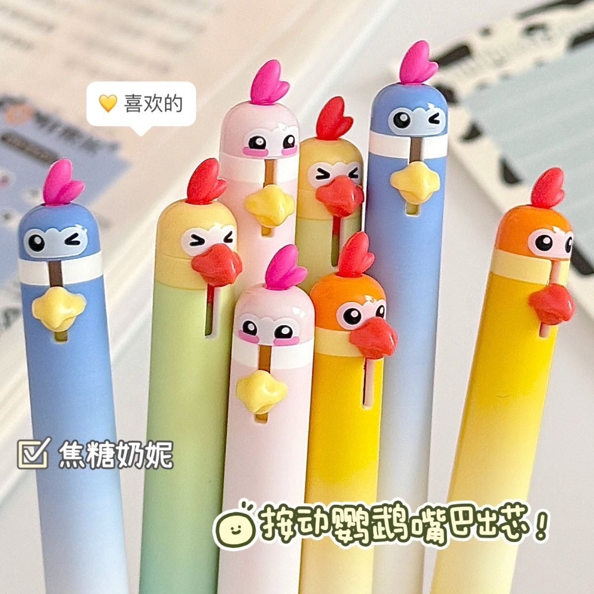 东米萌宠小鹦鹉小鸡按动笔搞怪解压学生速干刷题中性笔趣味高颜值可爱0.5顺滑ST头考试黑色水笔圆珠笔签字笔