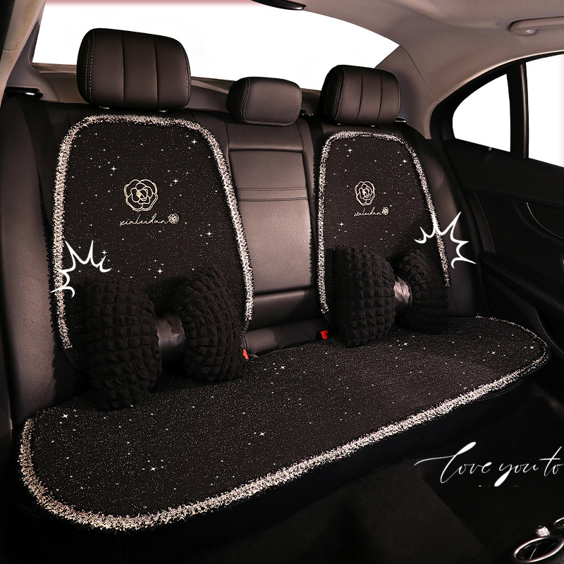 夏雷顿汽车坐垫通用花边山茶花四季通用车载座垫女士车内椅垫刺绣