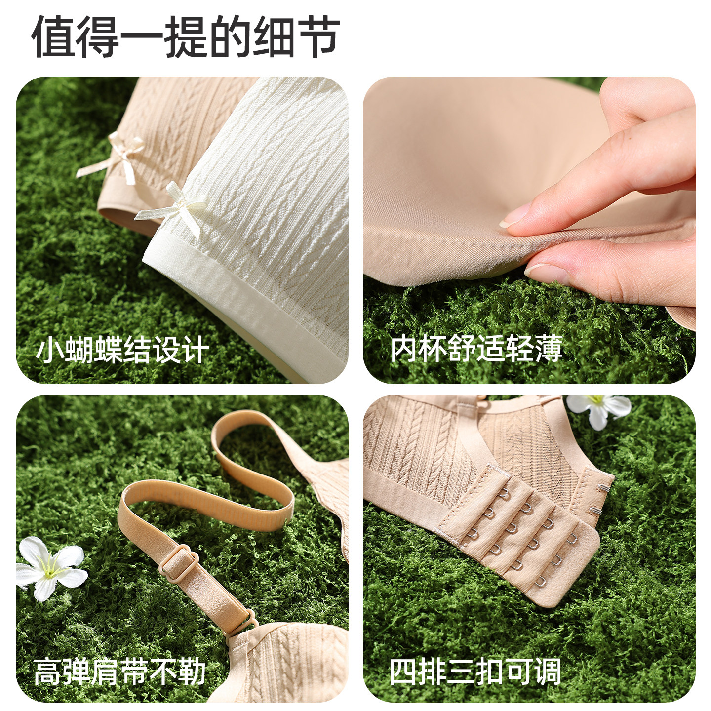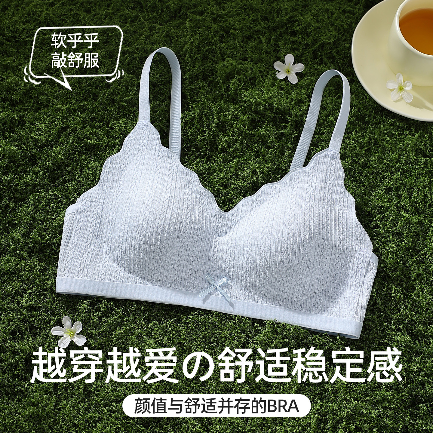 草本初色内衣女细肩带无痕夏季薄款大胸显小胸聚拢凉感无钢圈文胸