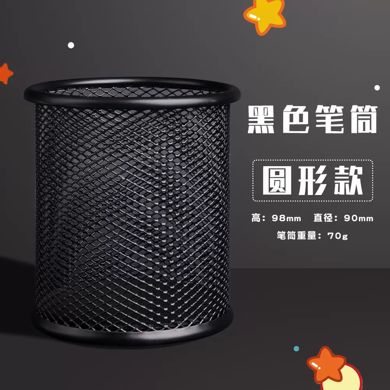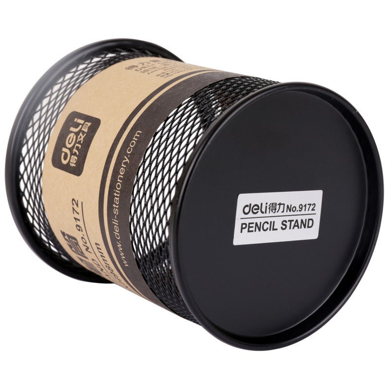 得力笔筒圆形金属网格笔插文具商务笔类收纳简约网纹创意时尚化妆刷收纳筒笔盒大容量多功能简约办公用品