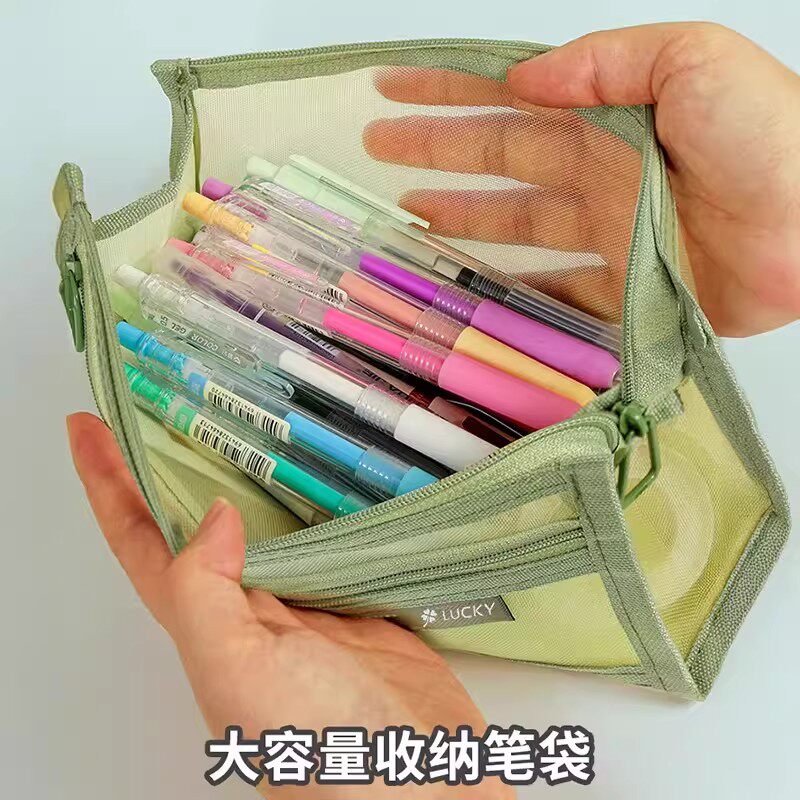 网纱笔袋透明学生考试专用文具袋儿童铅笔袋双层立体大容量文具盒男女孩款2026新款简约便携收纳袋高颜值便宜