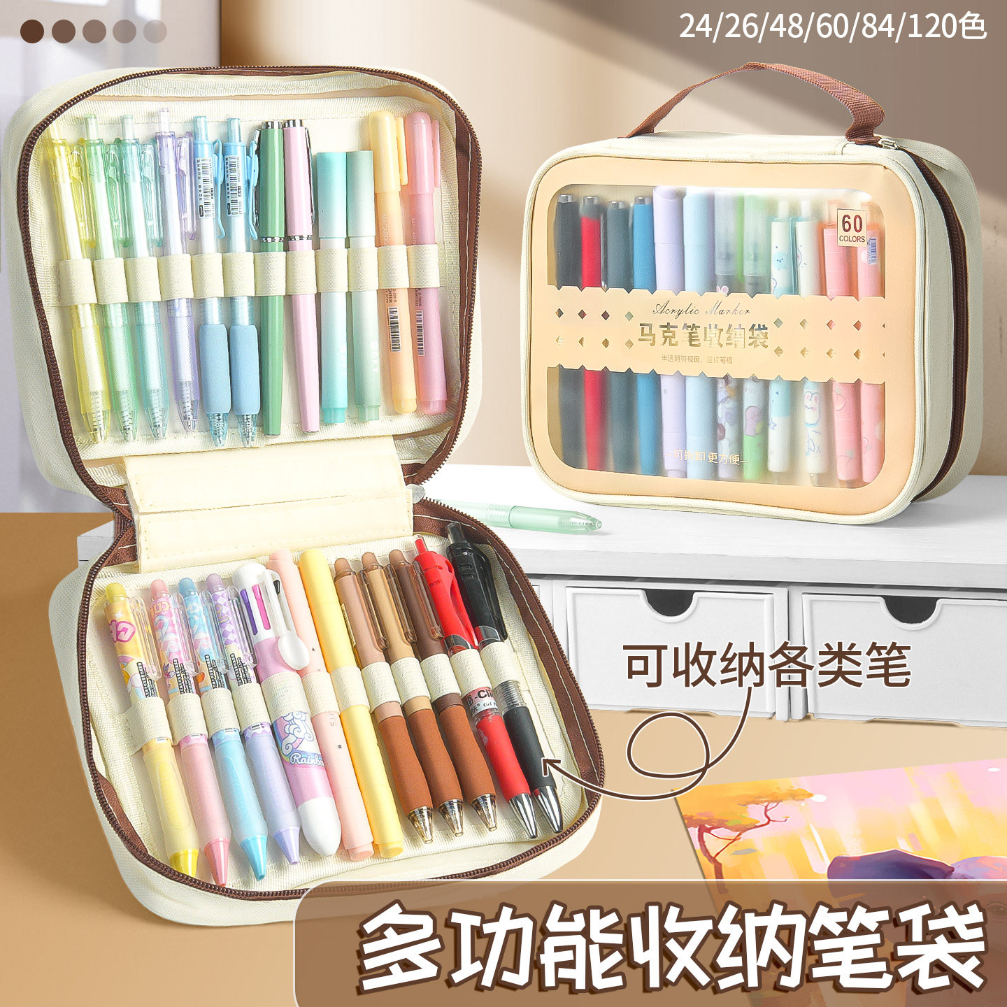 手提丙烯马克笔收纳包80色软头收纳袋可拆卸大容量120色84收纳盒