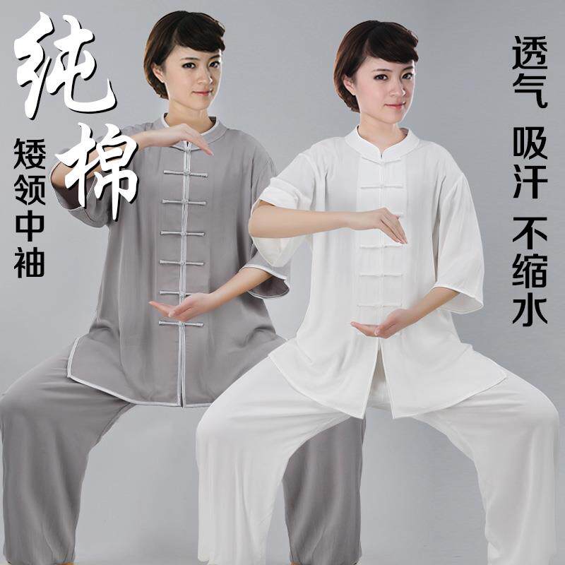 夏季新款纯棉太极服女中袖高端全棉太极拳练功服男薄款短袖武术服