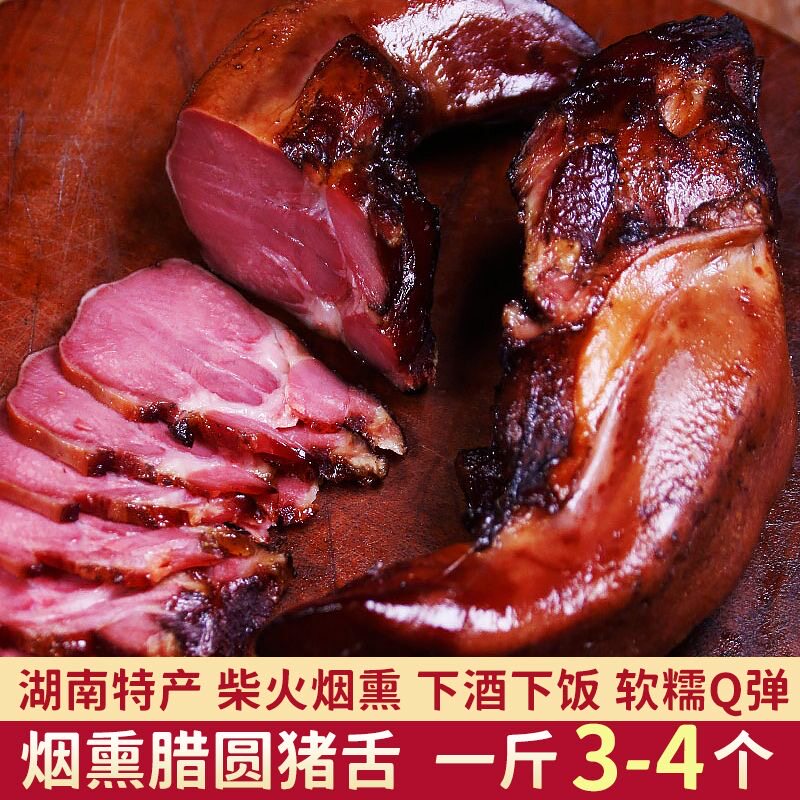 湖南农家腊猪舌头湖南特产柴火烟熏圆猪舌头散养土猪肉口条腊肉