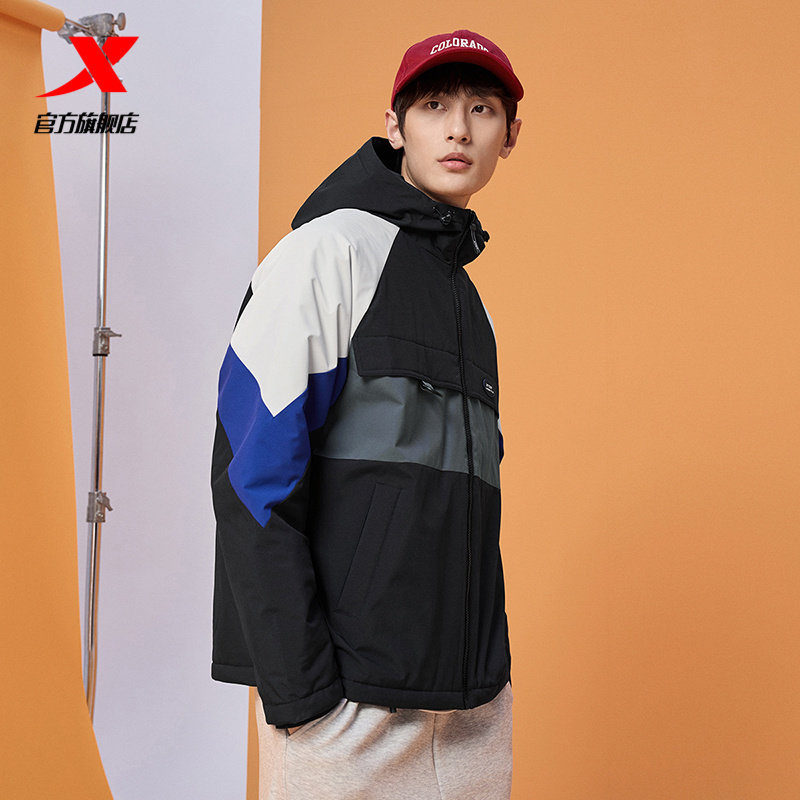 特步保暖棉服男装2025冬季新款加厚连帽外套运动棉衣977429170296