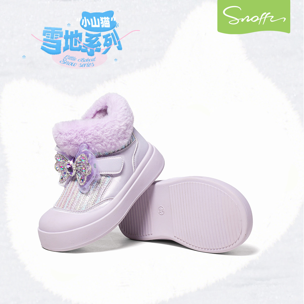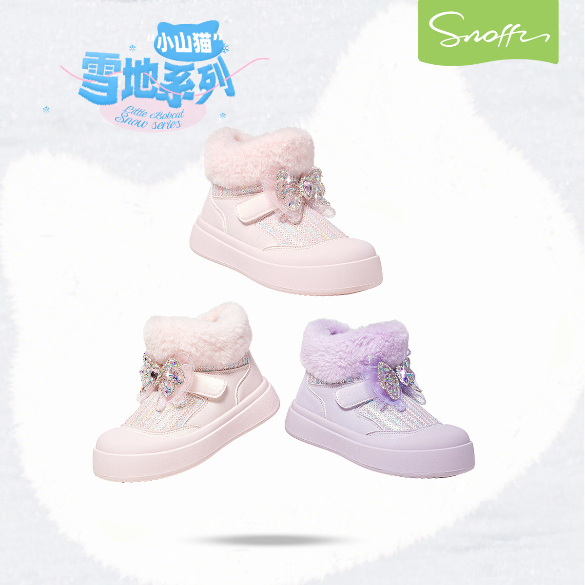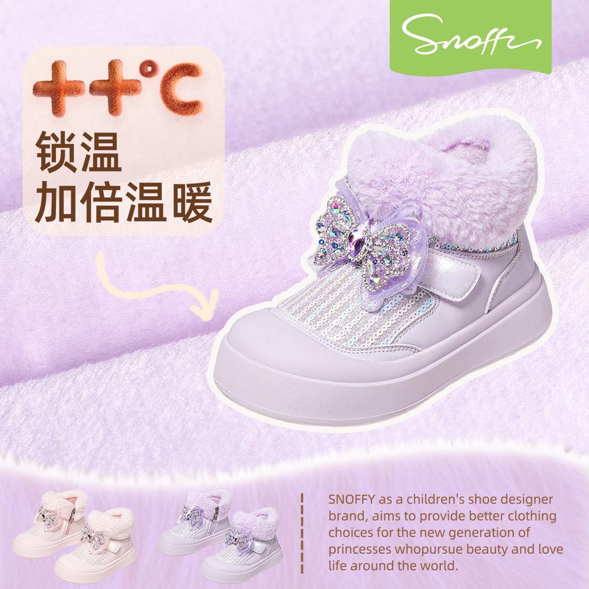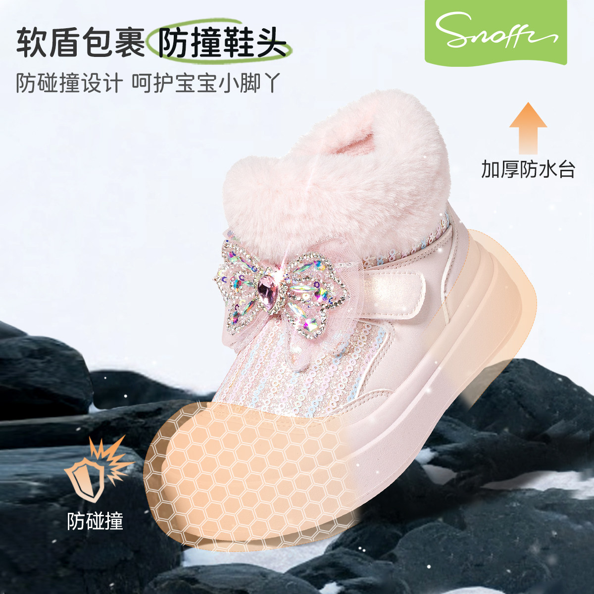 斯纳菲女童雪地靴2025冬季新款小女孩公主水晶鞋加绒棉鞋