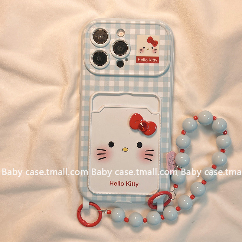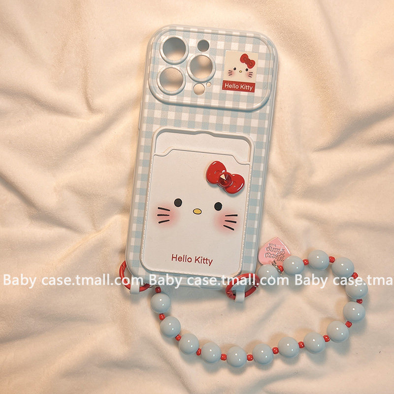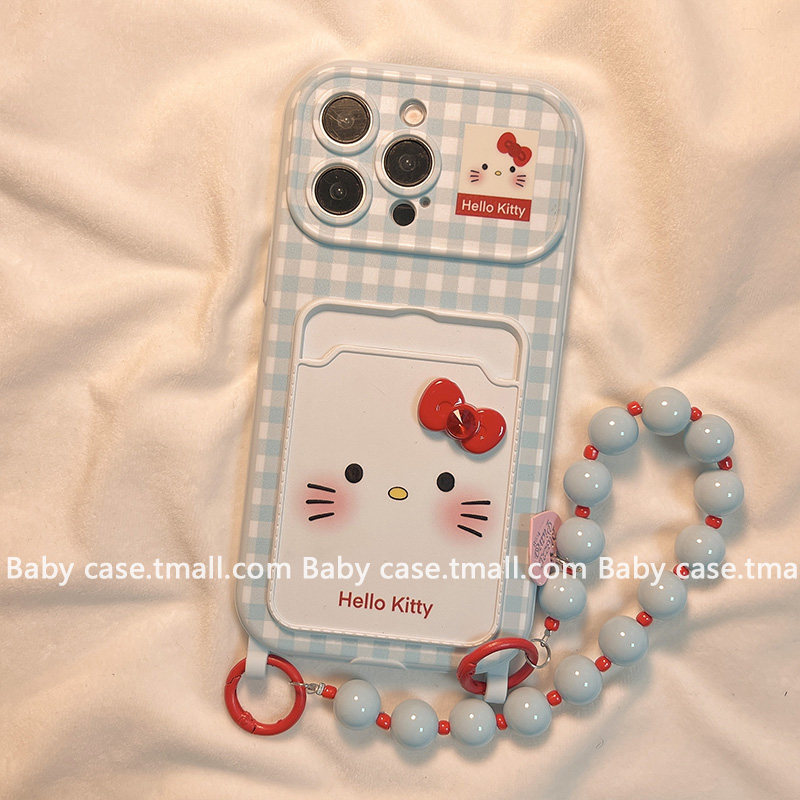 日韩格纹可爱KT猫卡包适用苹果大视窗手机壳
