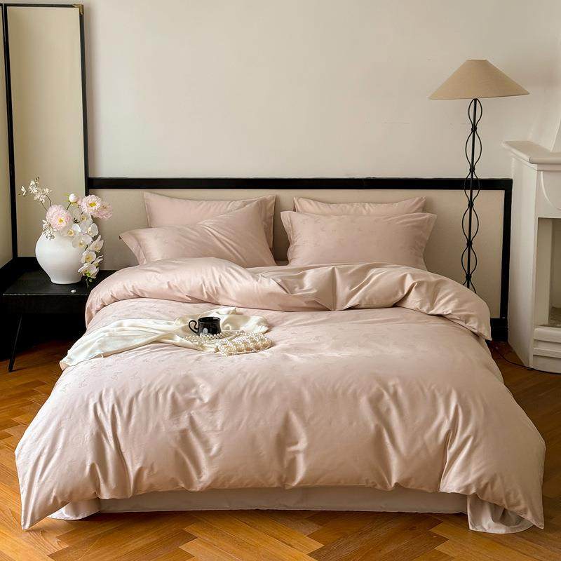 母婴级100S长绒棉全棉提花四件套纯棉床单被套轻奢风床上用品