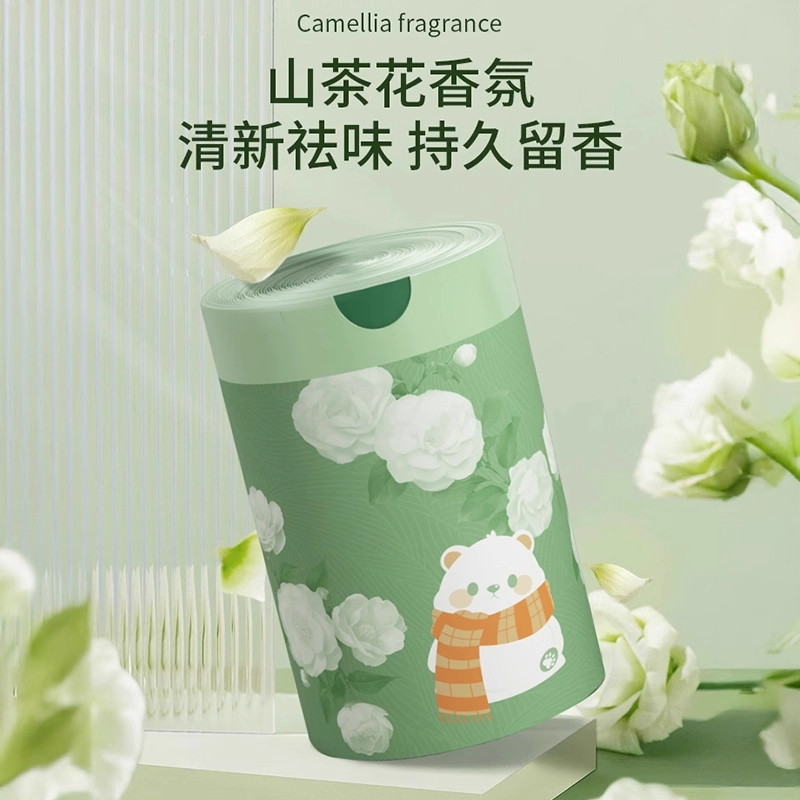 山茶花香味垃圾袋家用加厚款抽绳手提式厨房宿舍实惠装免撕特厚