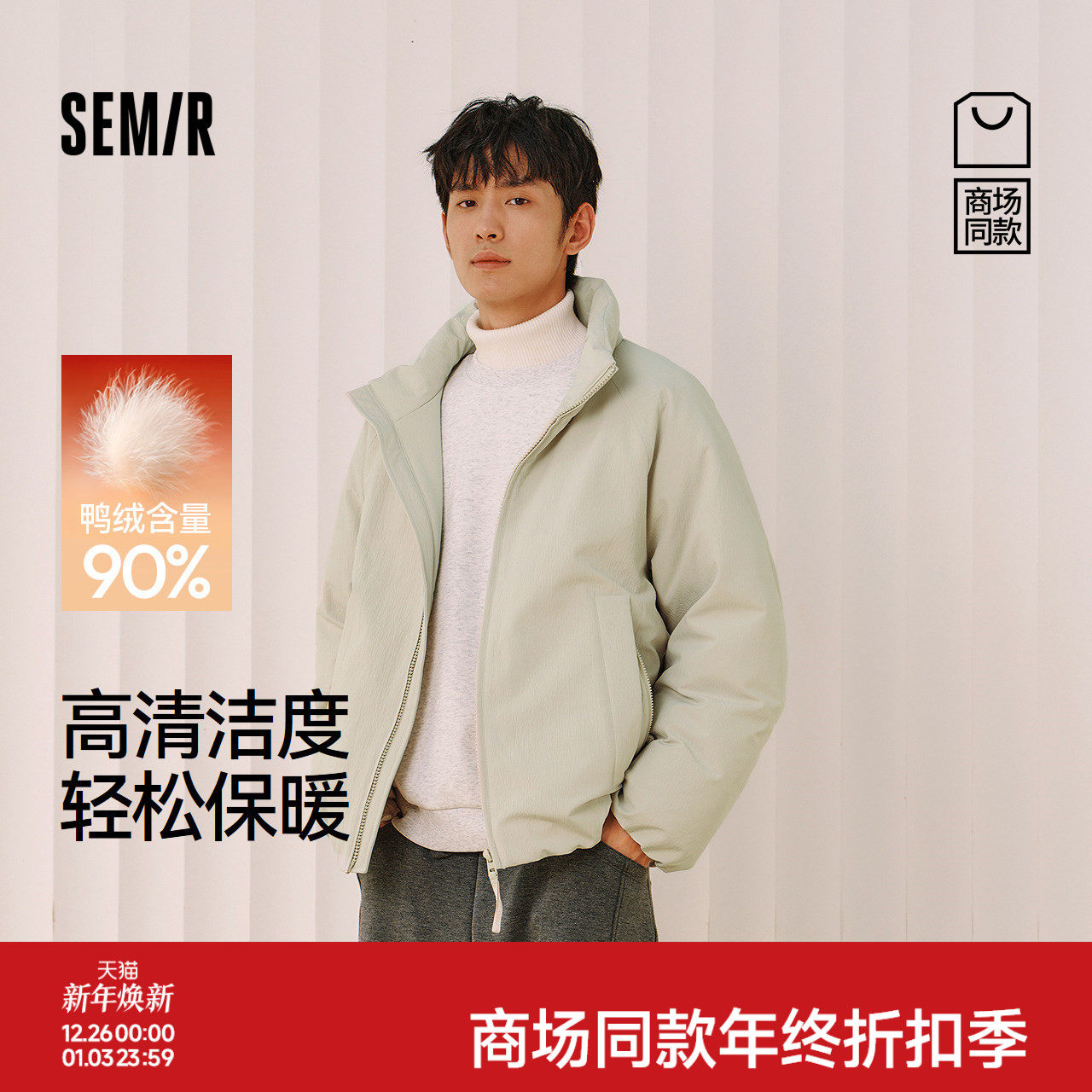 商场同款|森马羽绒服男冬装90绒子2025新款通勤休闲百搭立领外套