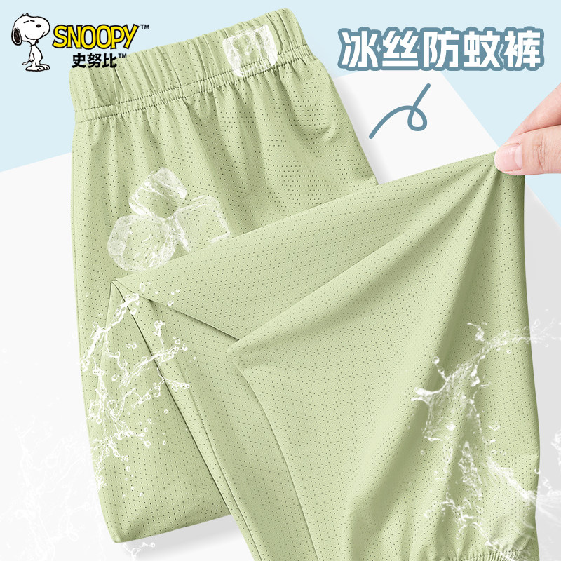 史努比童装男童裤子夏季薄款冰丝裤2025新款男大童防蚊裤夏款长裤