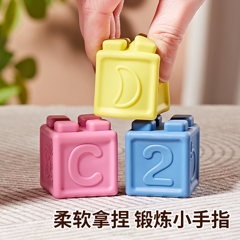 软积木婴儿可啃咬软胶硅胶婴儿宝宝牙胶0一6个月12抓握训练1岁