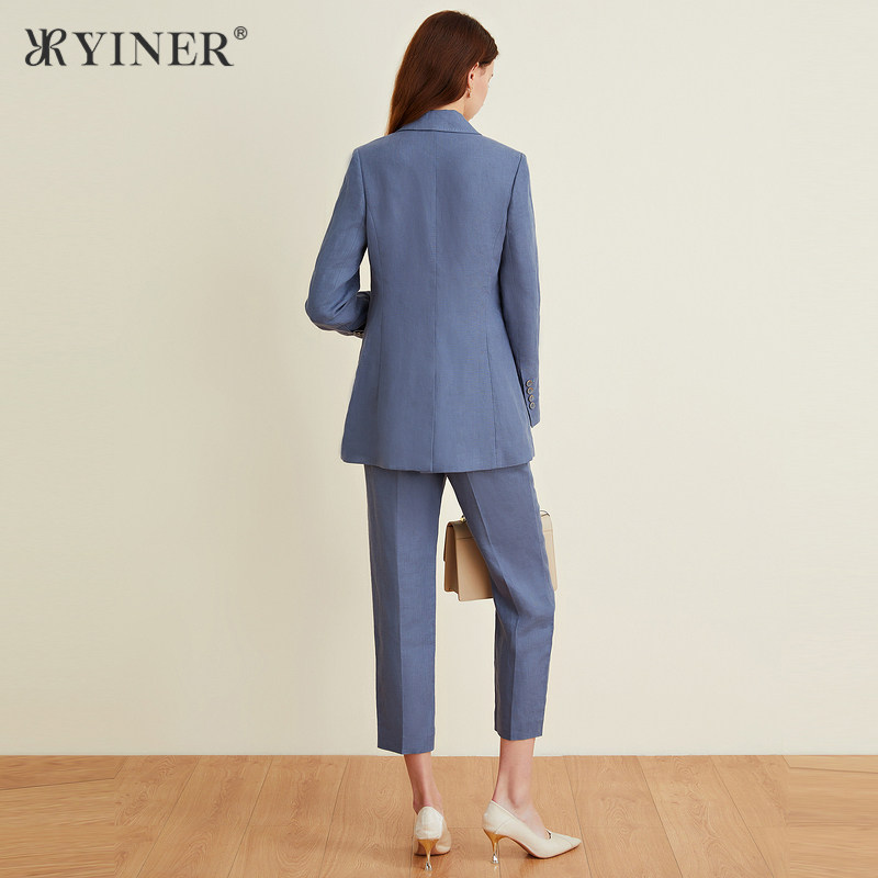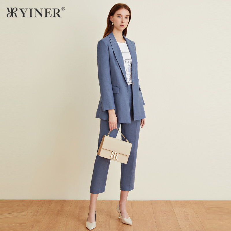 YINER音儿女装春季通勤OL风西装裤亚麻裤子