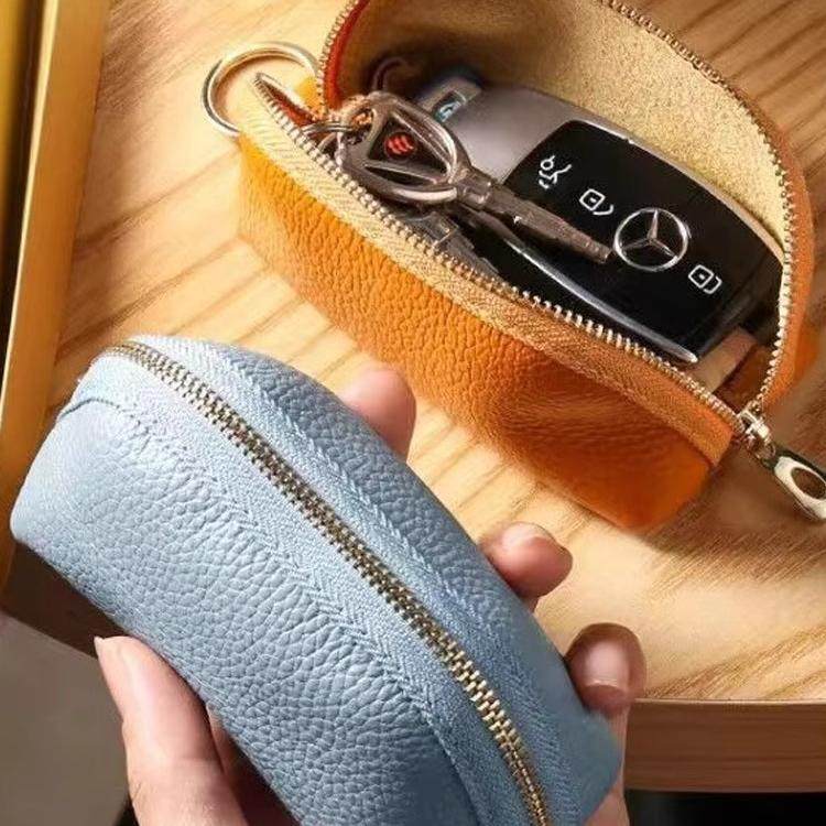 复古皮质车钥匙包小巧男女通用收纳大容量纯色多功能锁匙迷你小包