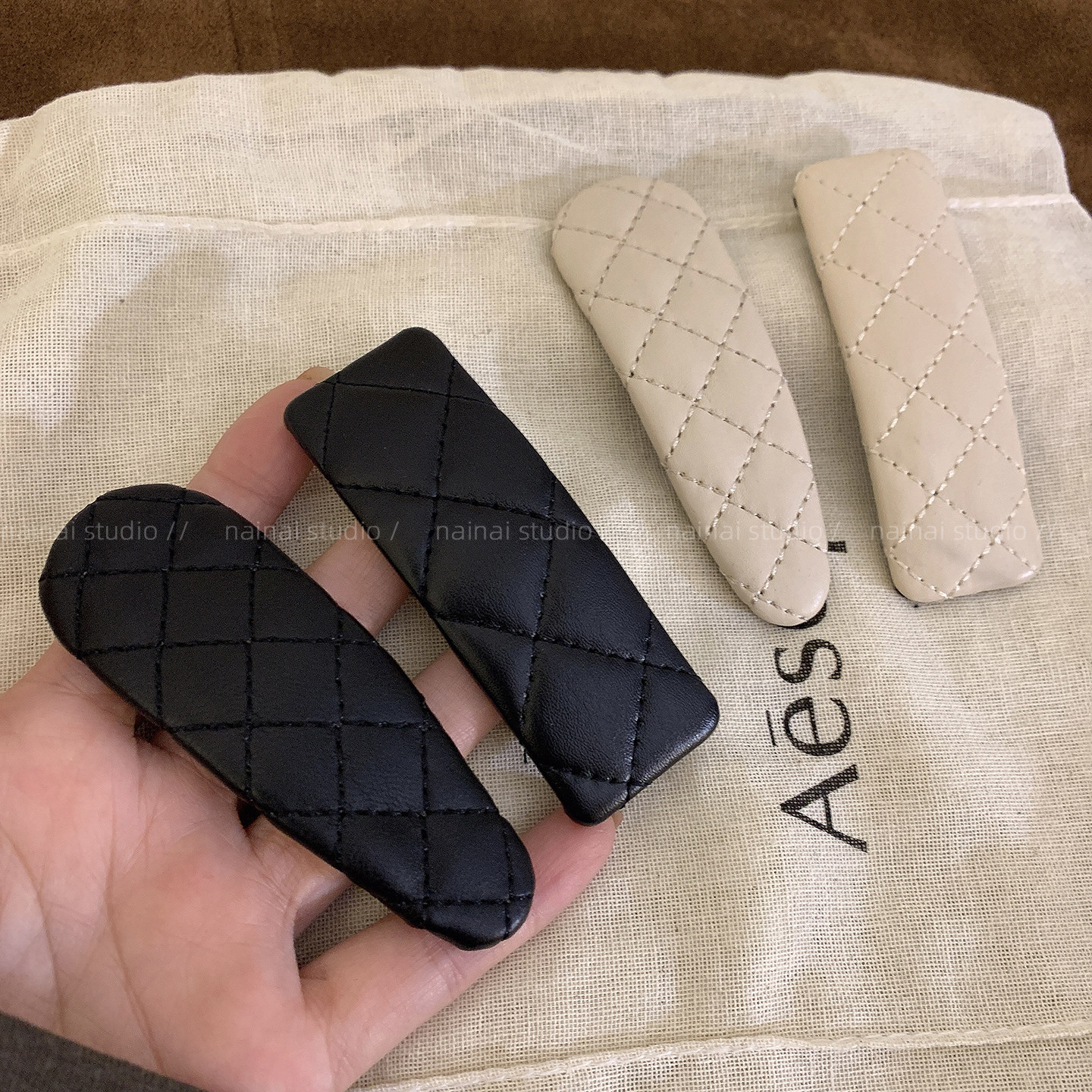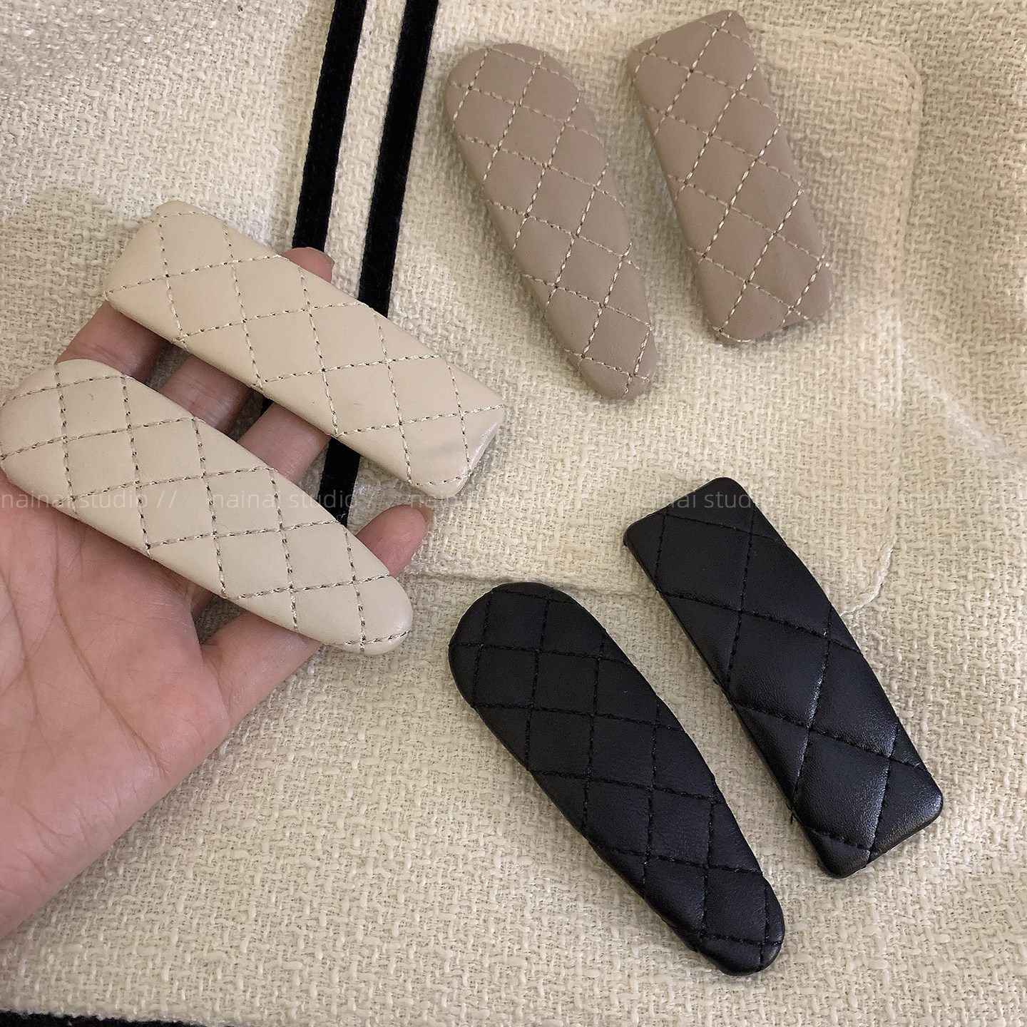 小香风格纹BB夹~复古法式皮革高级感气质侧边夹刘海夹发饰头饰女A