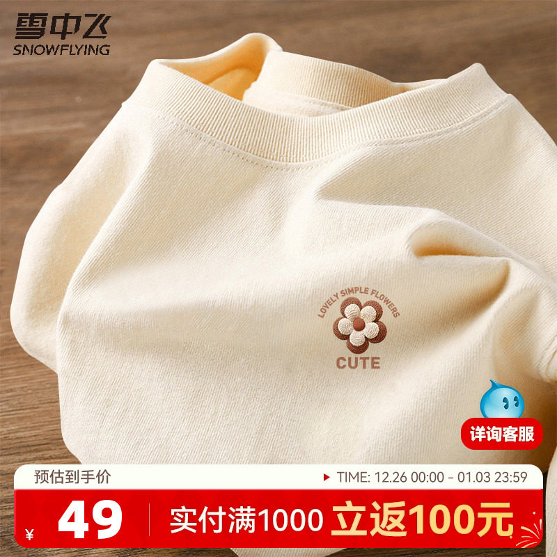 雪中飞纯棉长袖t恤女春秋2026年新款高级感内搭打底衫宽松上衣PC