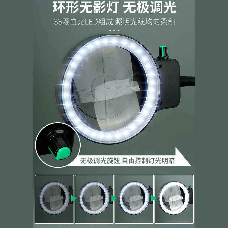 多功能台式放大镜维修电路板老人阅读台灯织补篆刻高清10倍可调光