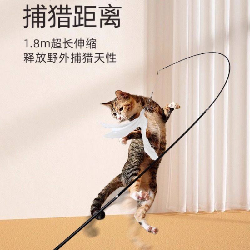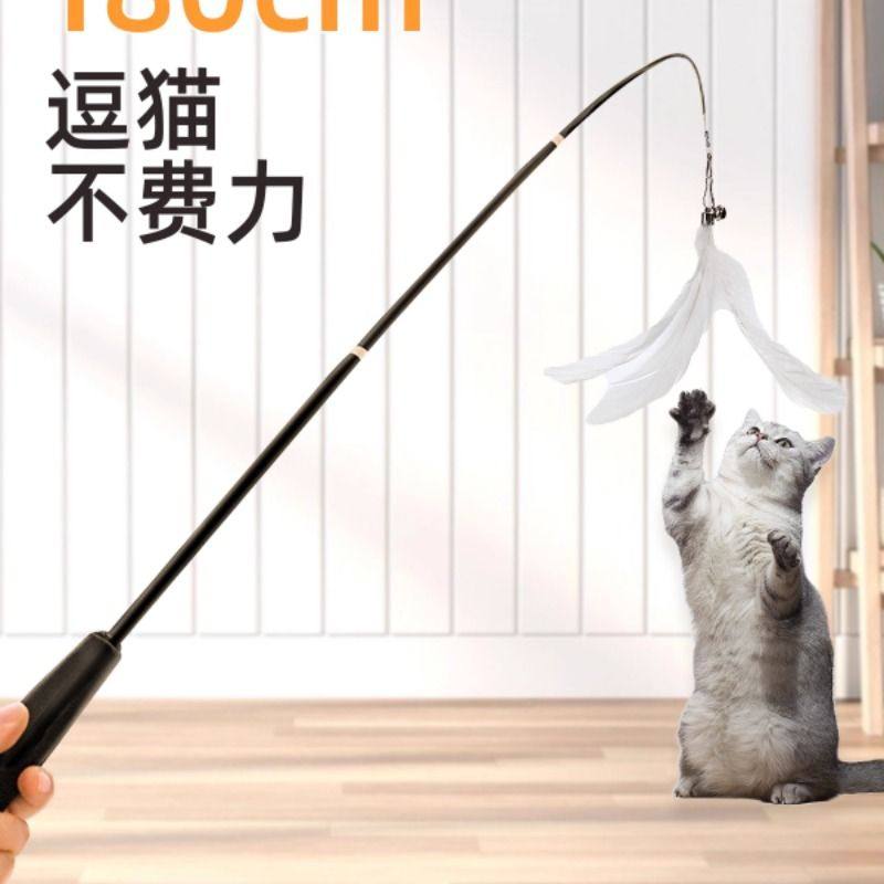 牧灵猫玩具逗猫棒长杆超伸缩羽毛质量好的钓鱼竿消耗体力猫咪用品