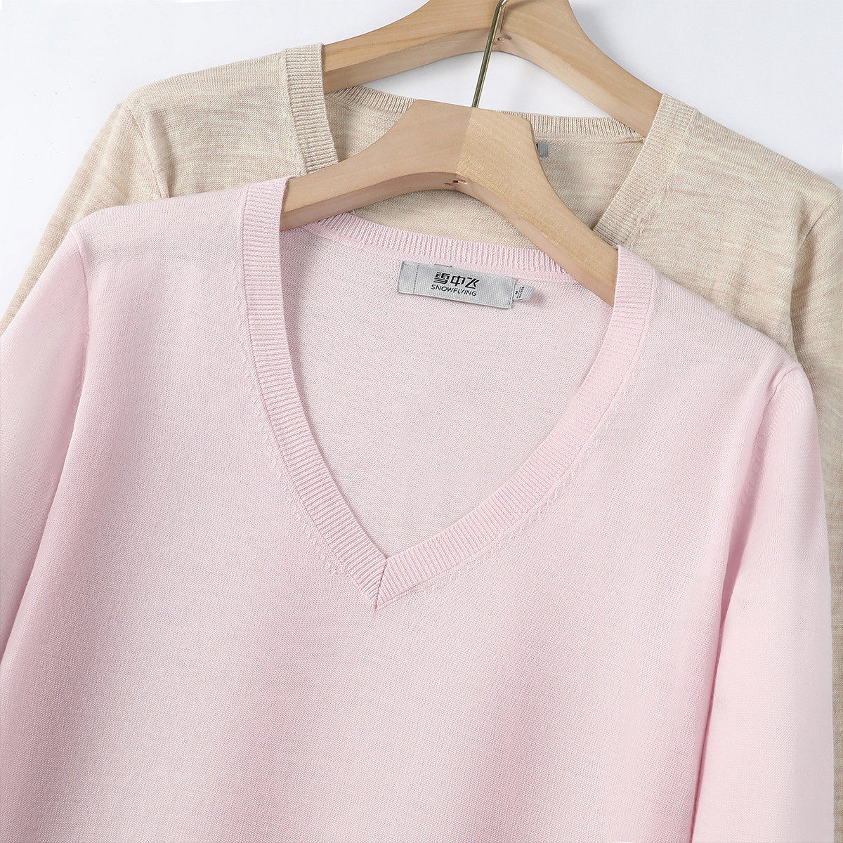 【100绵羊毛 纯色基础款】V领羊毛衫女秋冬休闲内搭套头毛衣