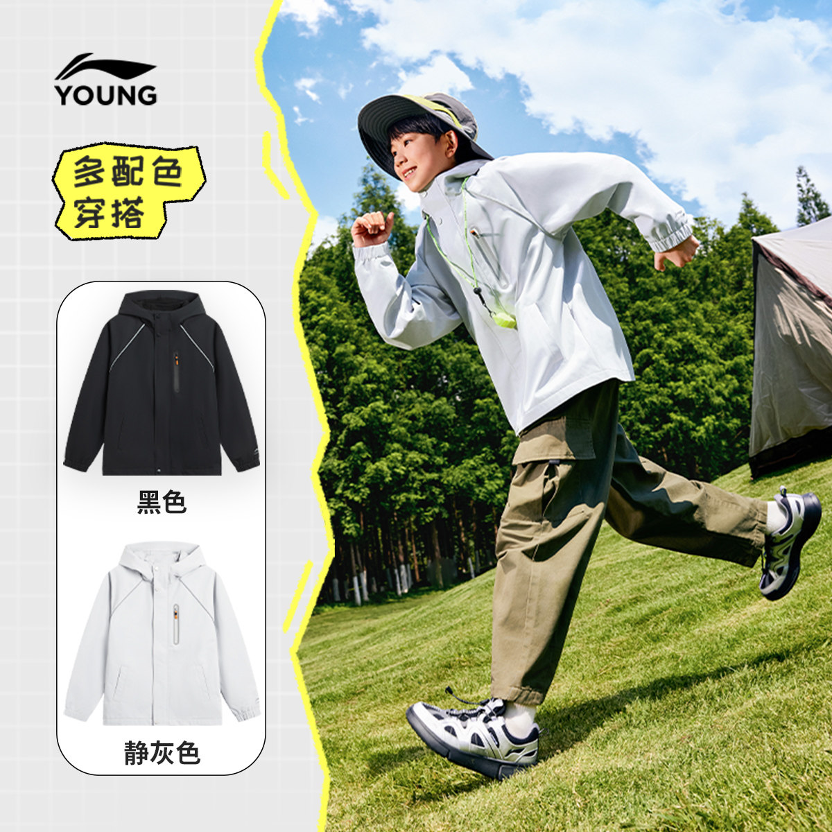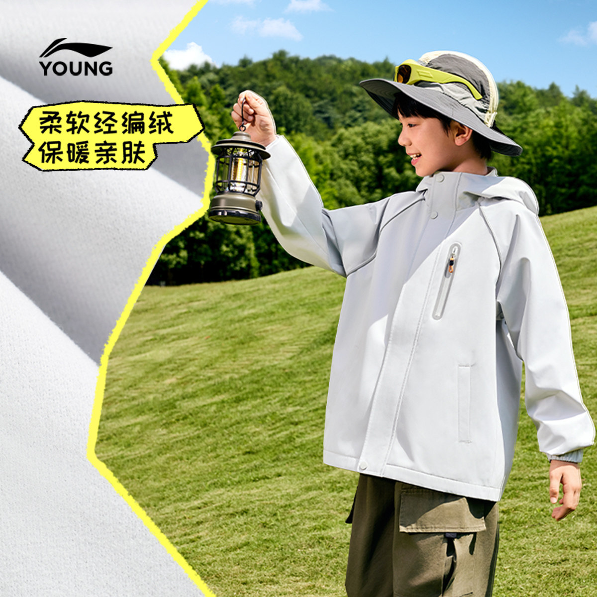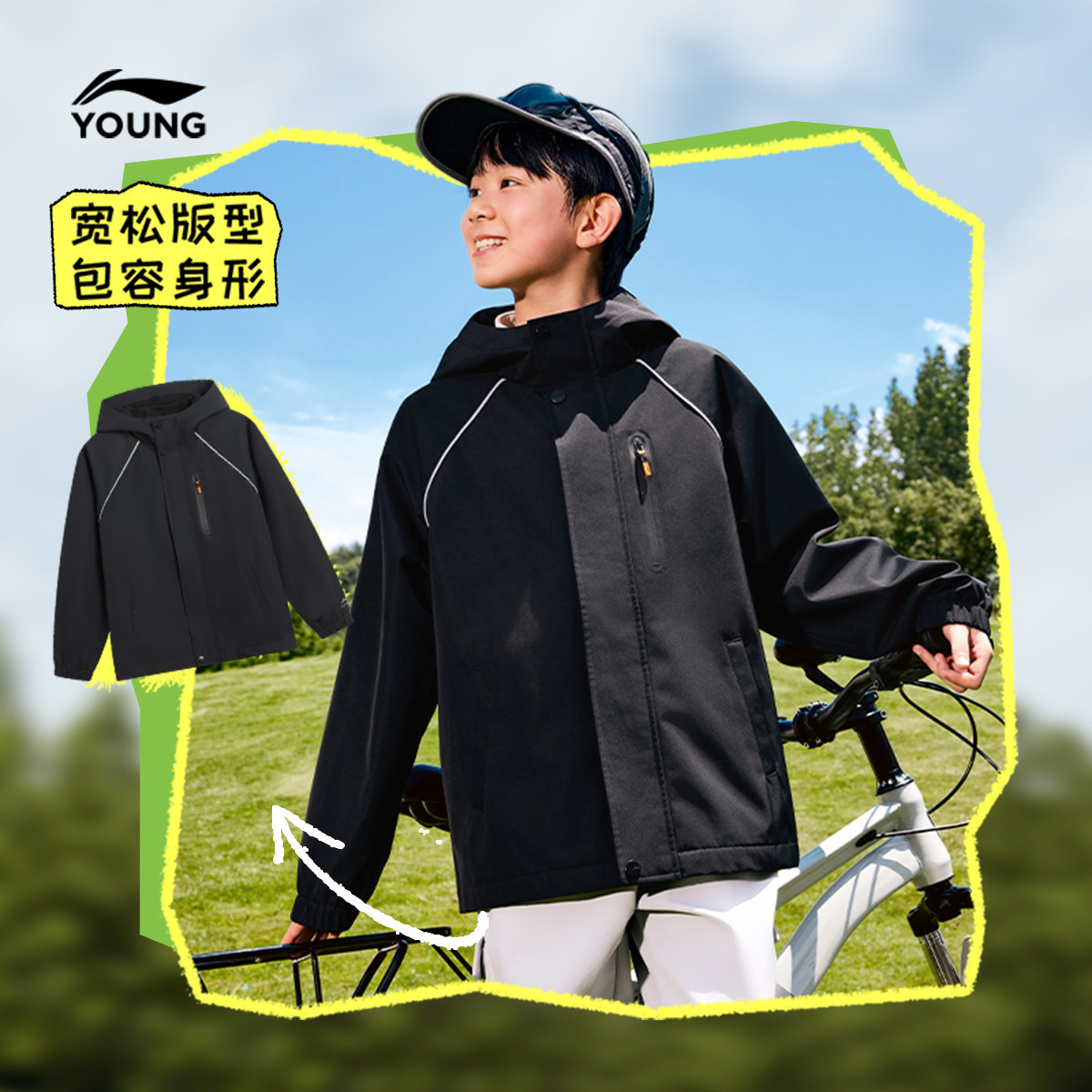 李宁童装风衣男女大童潮流新款运动生活系列加绒反光秋冬休闲童装