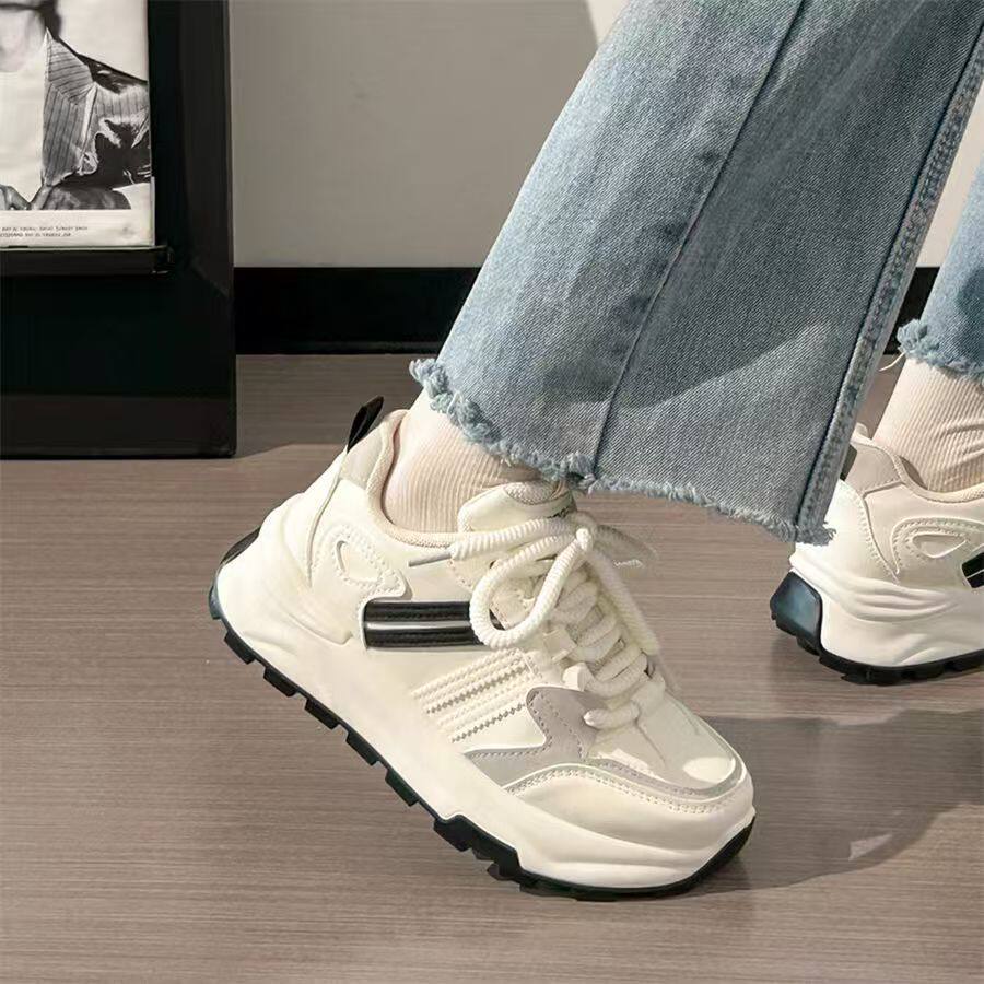 厚底老爹鞋女2025女款新款秋冬保暖加绒女鞋银色内增高休闲运动鞋