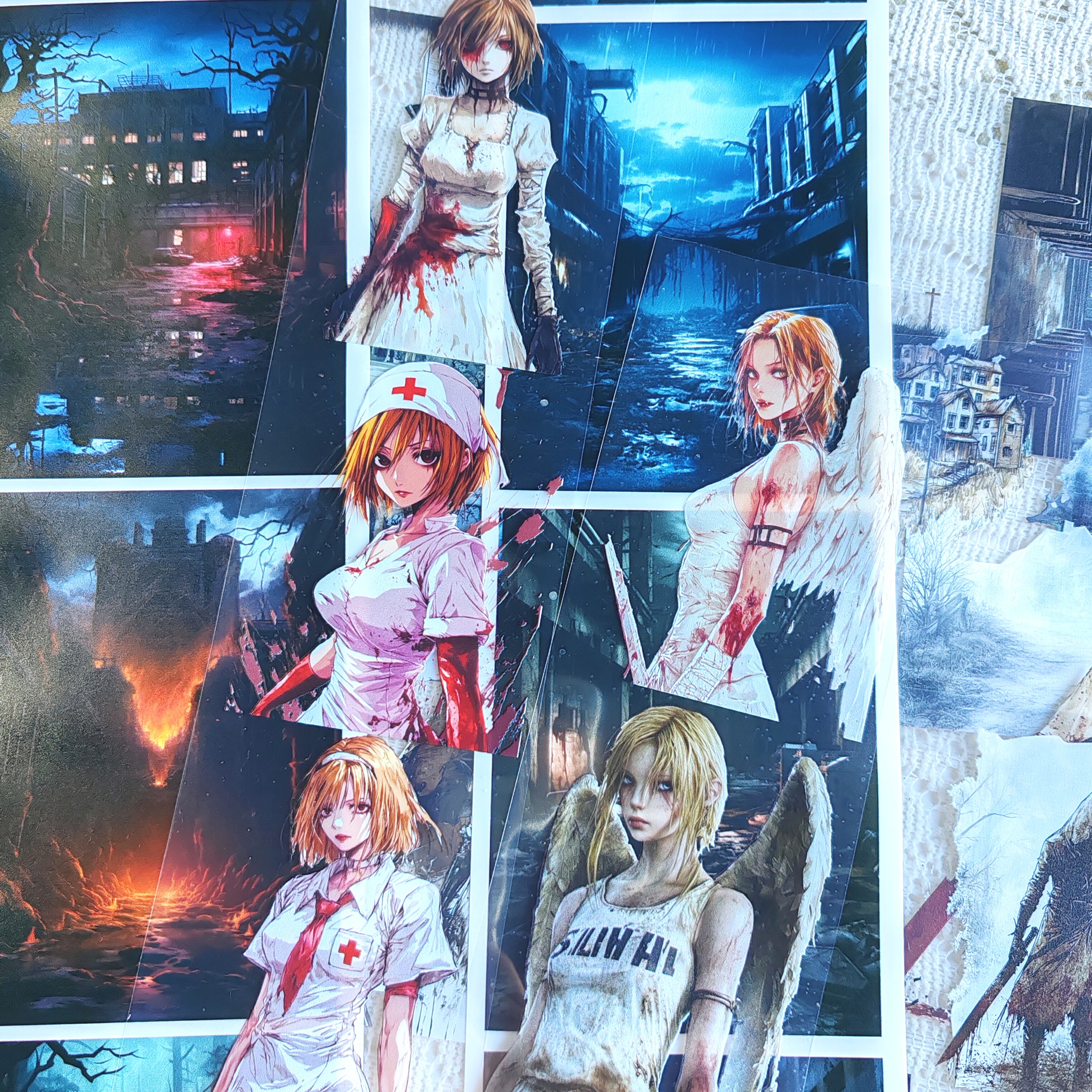 自制暗黑医院停车场废弃楼房打底胶带寂静岭系列房屋人物手帐胶带