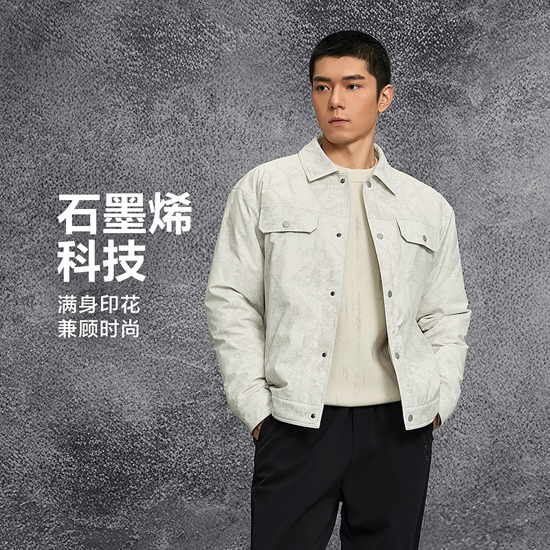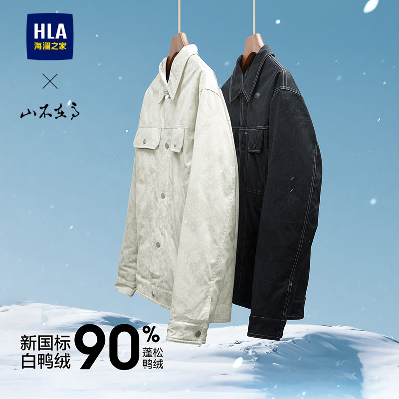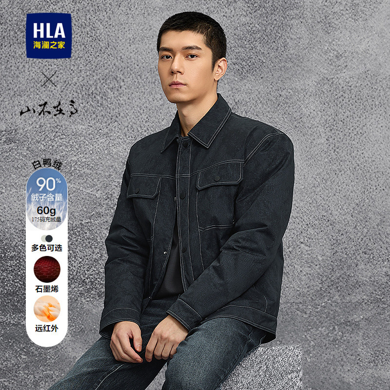 HLA/海澜之家山不在高羽绒服25秋冬新石墨烯按扣保暖仿牛仔外套男