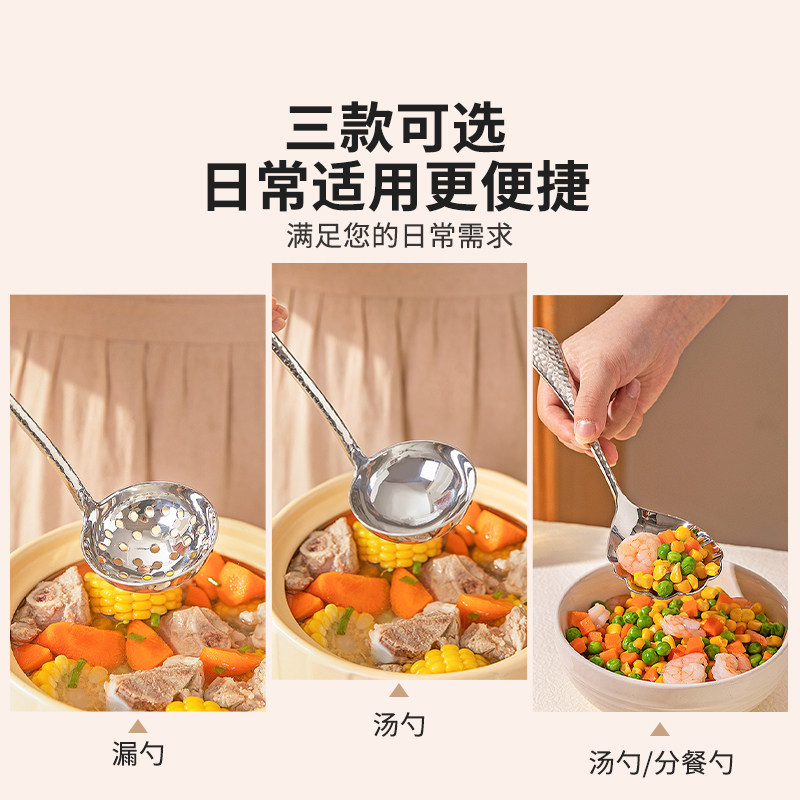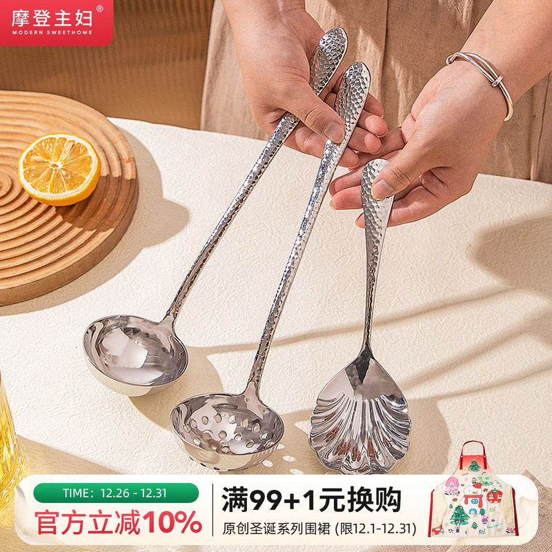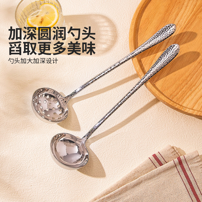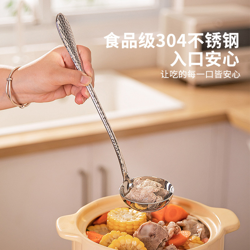 摩登主妇304不锈钢锤纹汤勺家用火锅漏勺螺蛳粉盛汤大号长柄勺子
