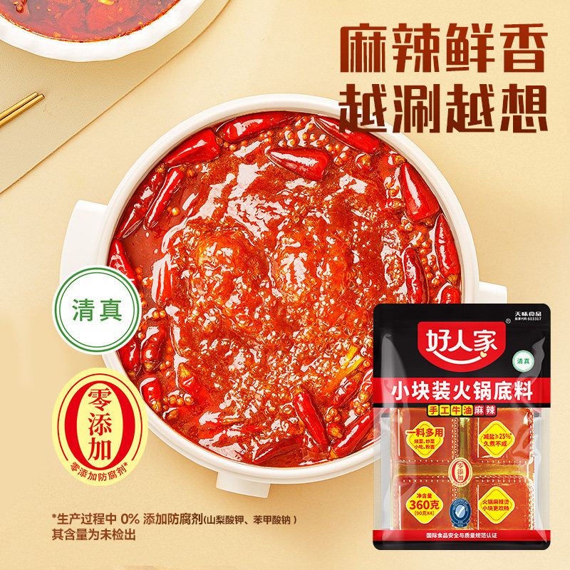 好人家火锅底料手工牛油四川重庆正宗火锅麻辣烫干锅料家用调料