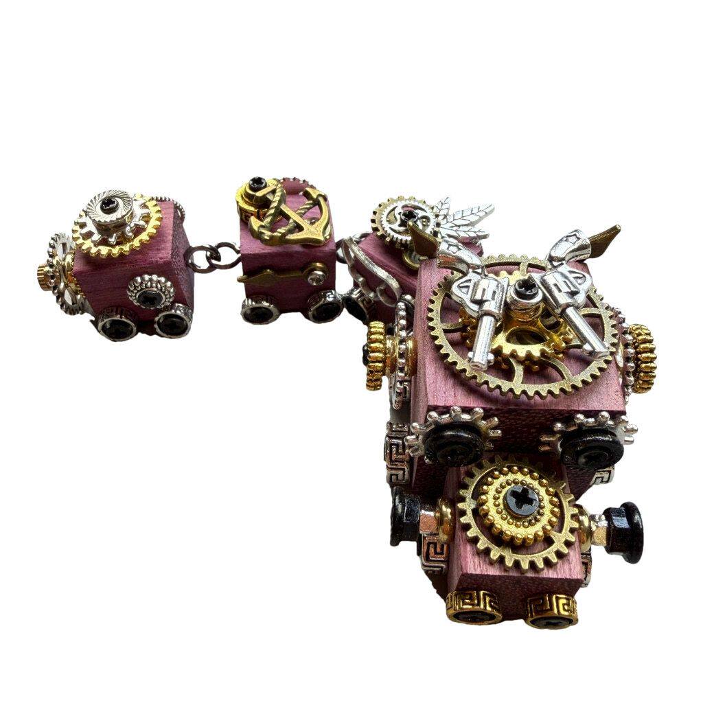手工朋克机器人小火车家居摆件挂件车载装饰木质创意桌摆礼物