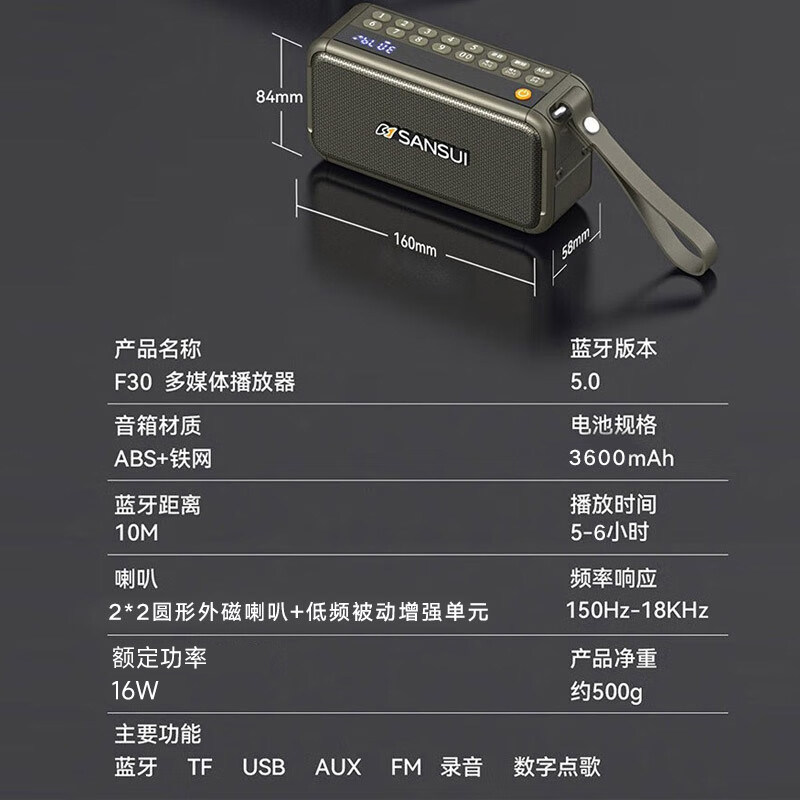 山水音箱16W大音量收音机插卡u盘户外便携太极拳专用跳舞蓝牙音响