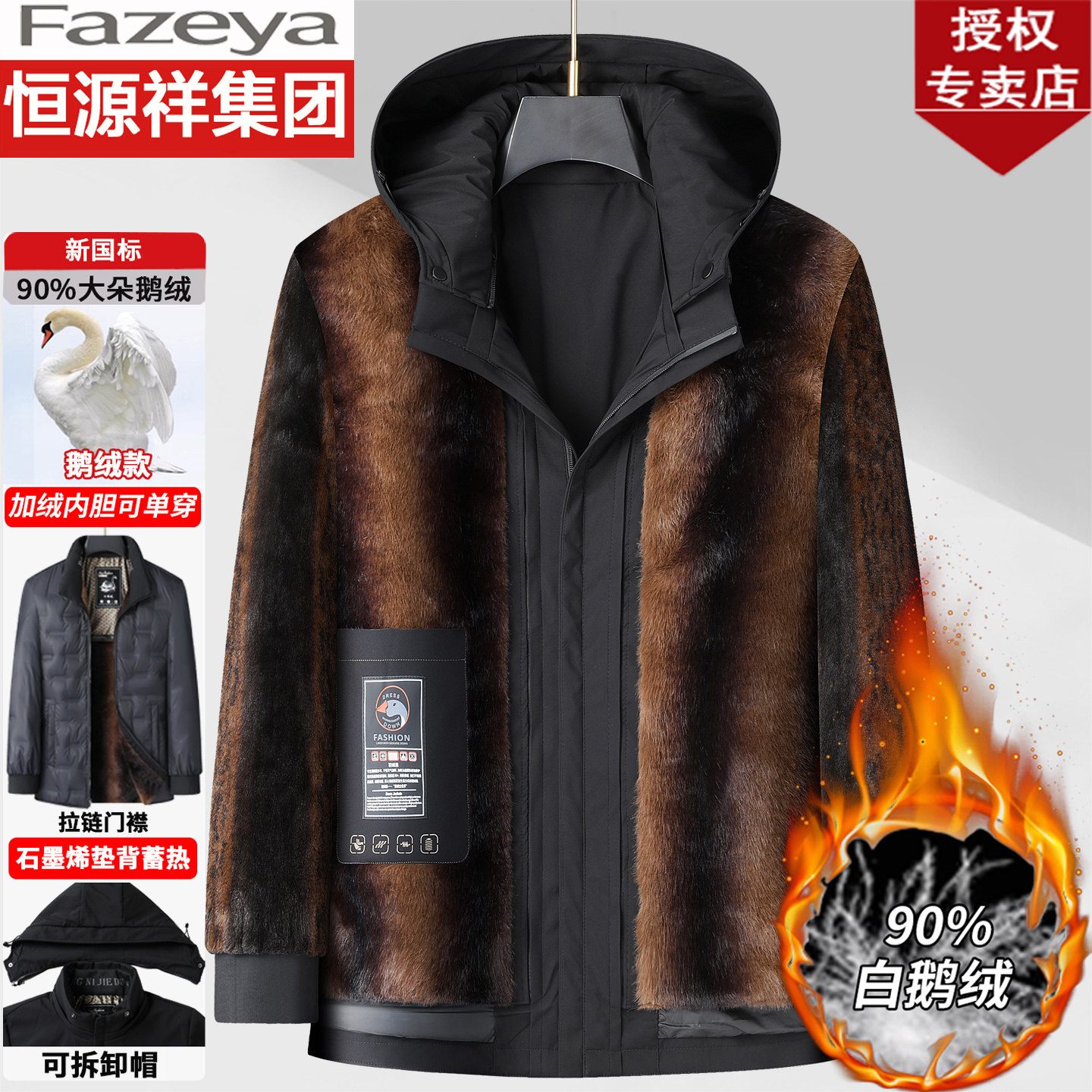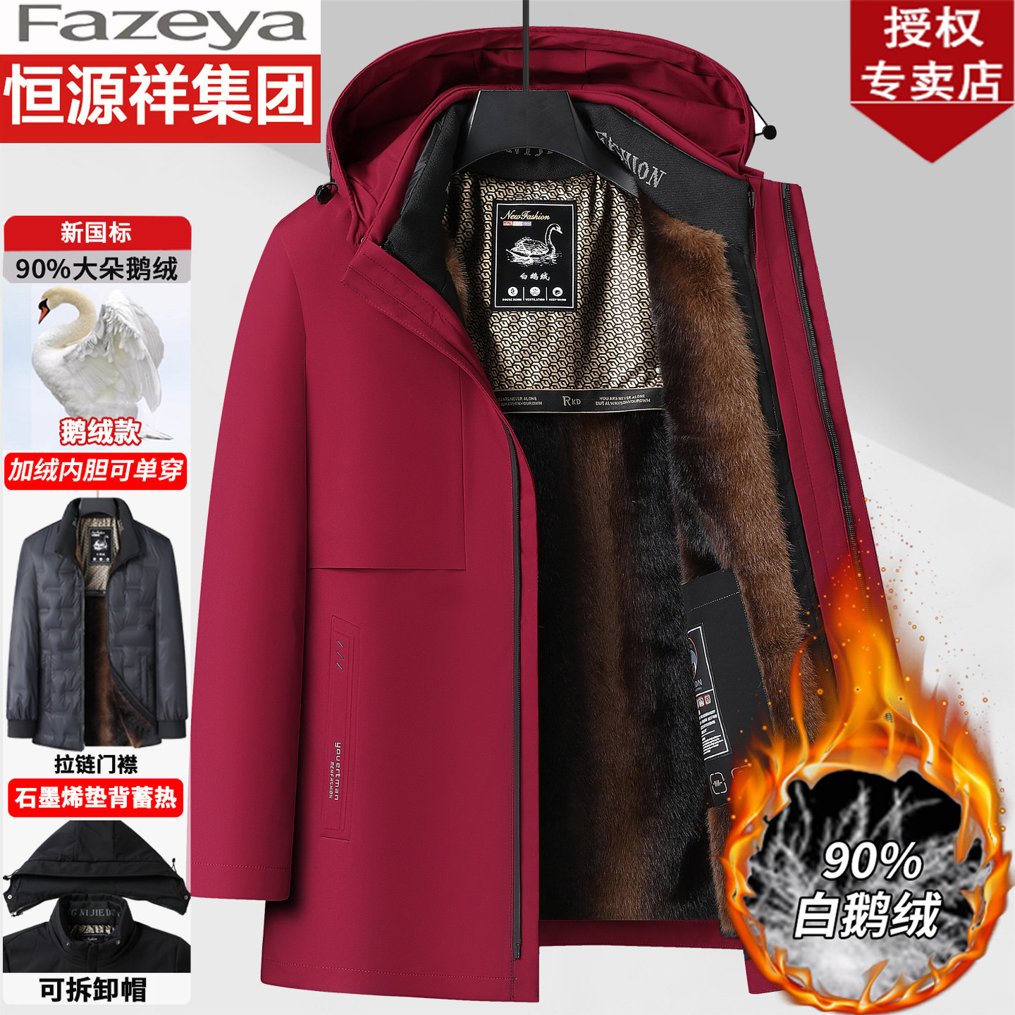 恒源祥集团彩羊男士鹅绒外套爸爸冬装加绒中长款可脱胆鹅绒羽绒服