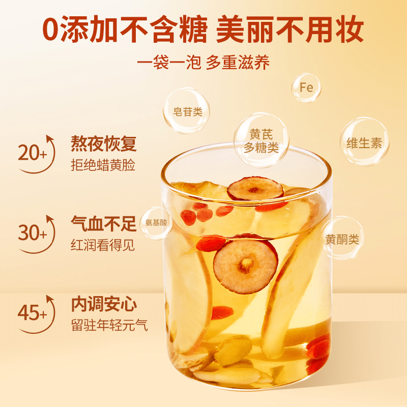 九芝堂苹果黄芪水红枣枸杞女生素颜水脸暗黄调理养颜补气血养生茶