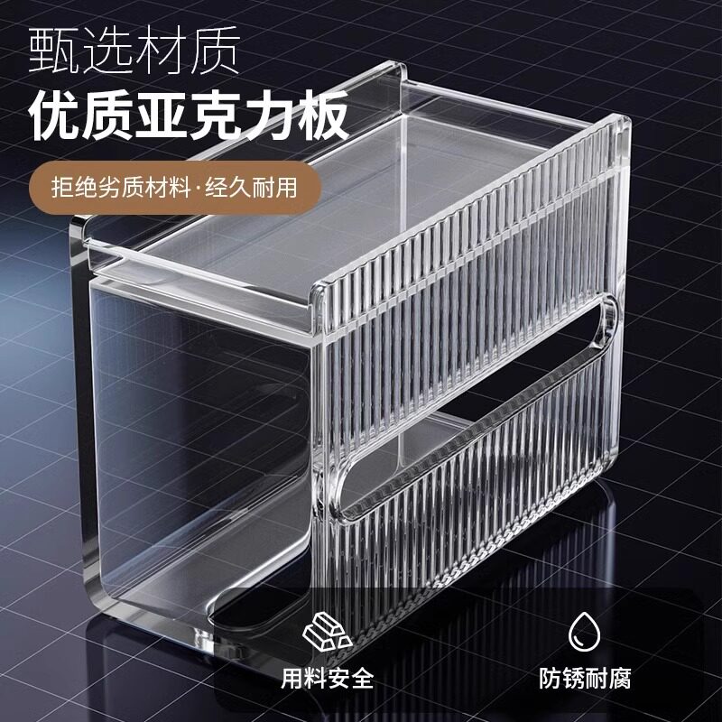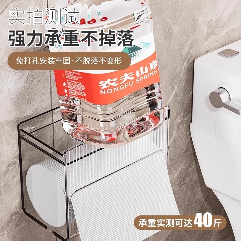 卫生间纸巾盒壁挂式免打孔防水卫生纸置物盒子家用透明厕所抽纸盒