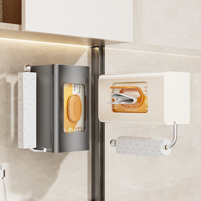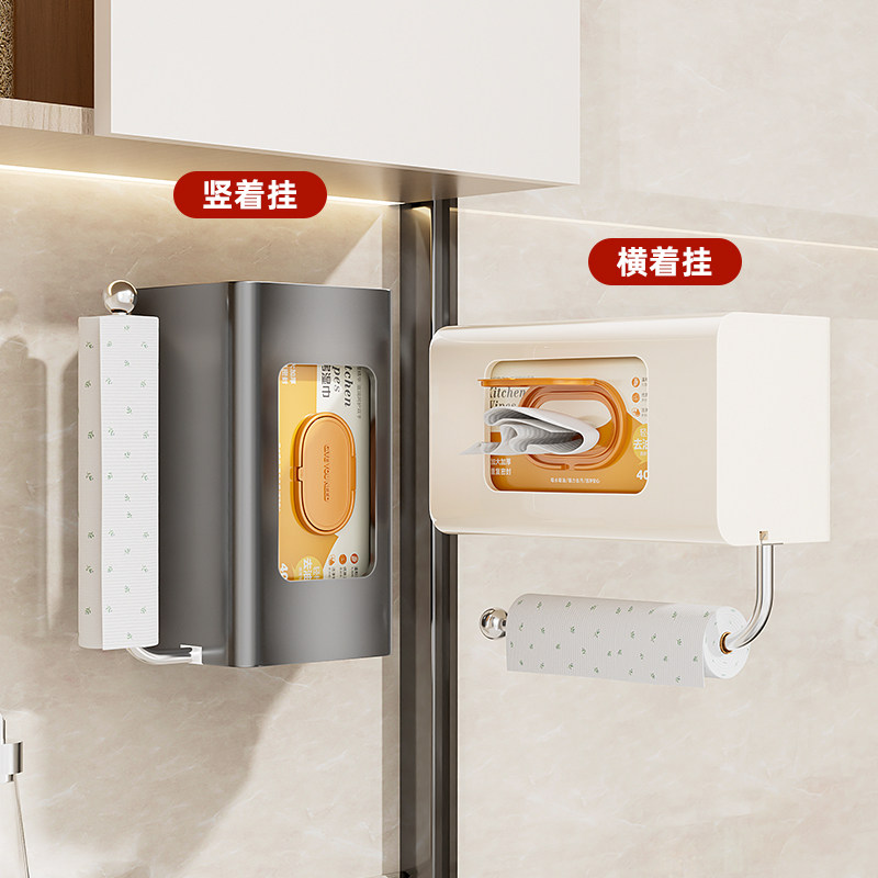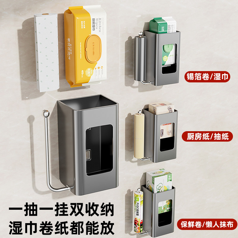 厨房纸巾架湿巾盒免打孔壁挂抽纸盒保鲜膜卷纸架子收纳置物架浴室